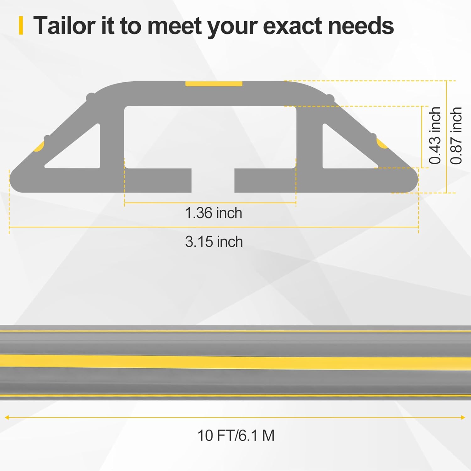 - 【Easy to Cut】 Our product is easy to cut and install for its high quality material. You only need to cut it with a knife or scissors based on your actual situation. Before that, you have to check the approximate length your need. Length: 10ft/3.05m. The middle channel : 1.36 x 0.43 inches