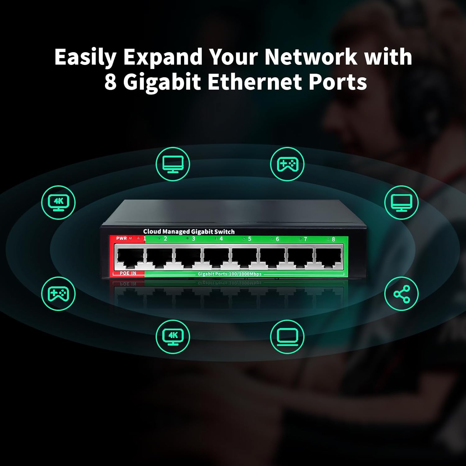 - 🏭Cost-Effective Solution for Growing Businesses:Easily add ports as your business technology needs grow. The STEAMEMO 8 port Cloud Managed Switch offers flexible management from a single location, saving you both time and expense.
