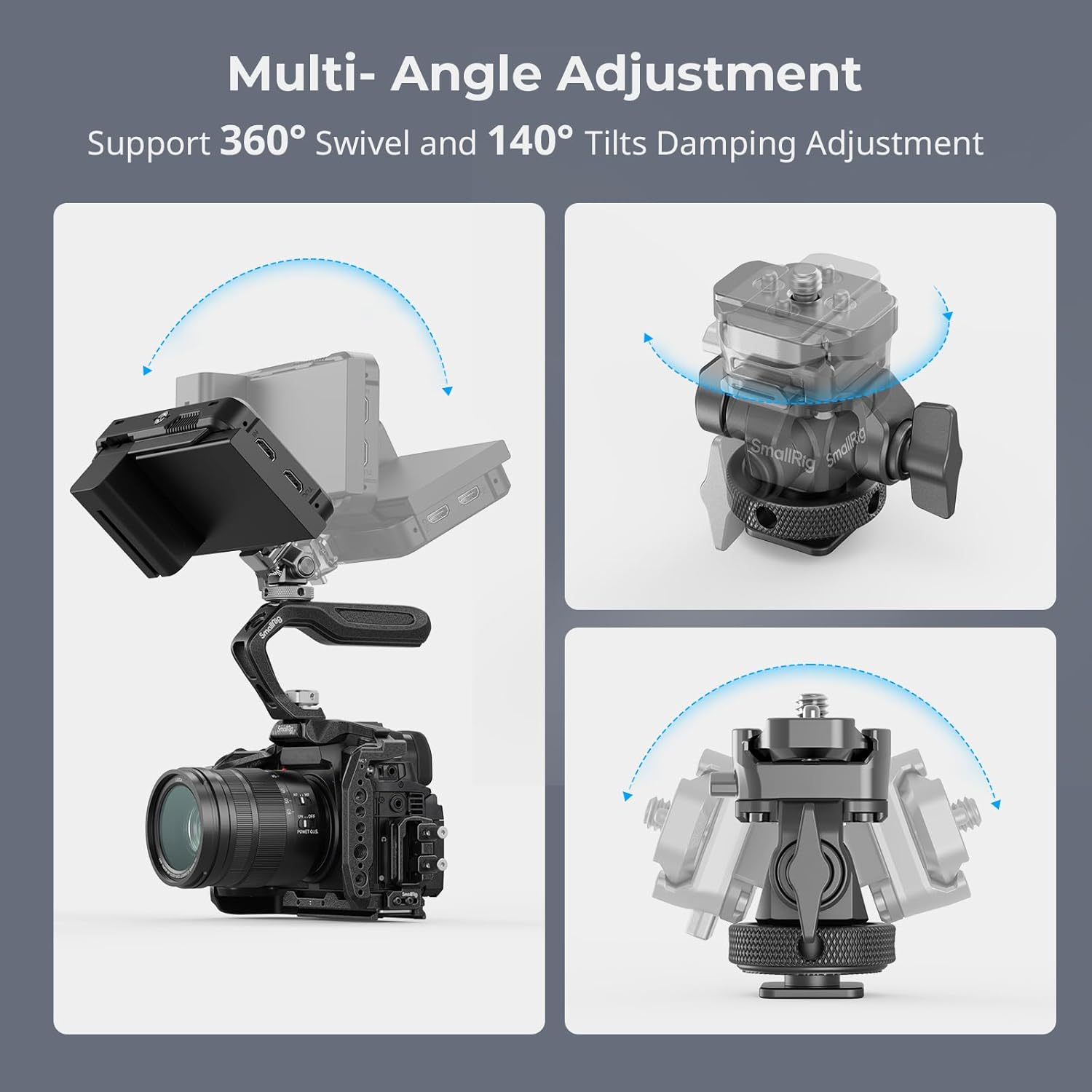 - Swivels 360° & Tilts 140°: SmallRig Adjustable Monitor Holder 4888 can quickly adjust the tightness of the tilt axis through a knob and an accompanying allen wrench, achieving pitch adjustment of 140 ° and horizontal adjustment of 360 °, better adapting to devices of different weights, and more flexibly adapting to multi angle camera positions to meet your shooting needs