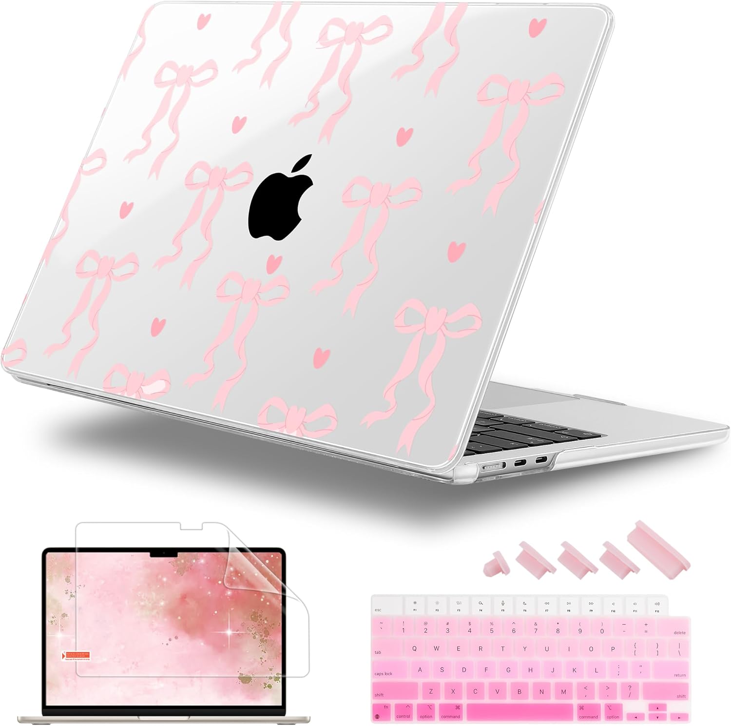 Case for MacBook Air 15 Inch 2025 2024 2023 Release M4 A3241 M3 A3114 M2 A2941, Hard Shell with Screen Protector & Keyboard Cover, Compatible with Touch ID, Bow
