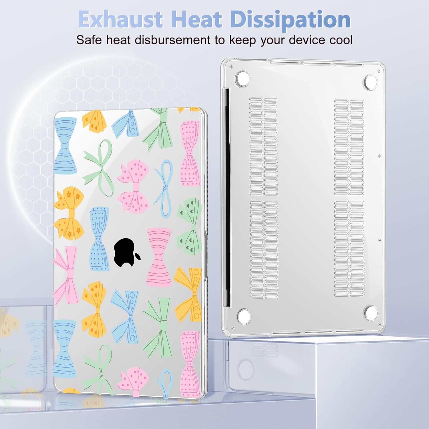 - Perfect Fit: Precise cutouts allow to access all functions and controls easily. Plug your charger, cable or headset without removing the case. The bottom cover is designed with ventilation vents to help dissipate heat and prevent your laptop from overheating. Four silicone feet on the bottom cover keep your laptop secure and stable
