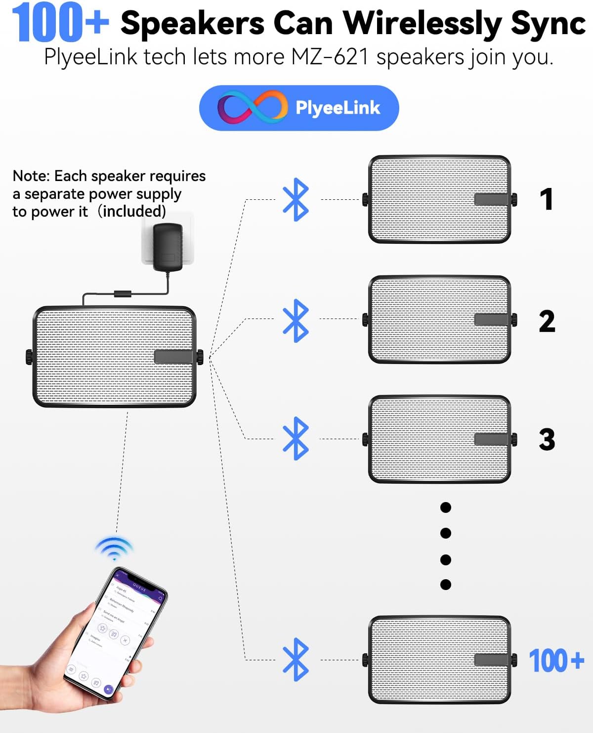 - πππ¨ππ§π’π’π§π π π¨ππ§πβπ¦π£πππππ₯ π¦π¬π‘π β ππ¬π¬+ ππ’π‘π‘πππ§ππ’π‘π¦: Thanks to PlyeeLink technology, the MZ-621 supports wireless connections for up to 100 speakers. It can seamlessly sync with more MZ-621 and MZ-632 speakers to build a larger, unified sound system. Note: Not compatible with MZ-511. Now supports Amazon Echo / Echo Dot for voice-controlled streaming.