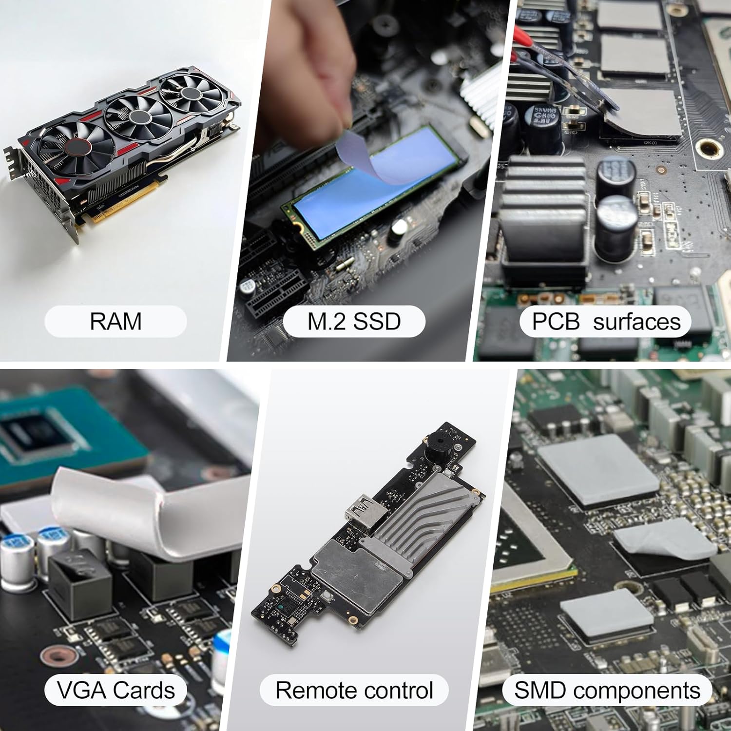 - WIDE APPLICATION - Suitable for electronics PCB surface, controller, CPU, GPU, radiator, power supply, VAG card, hard disk, computer host, notebook computer, memory stick, 3080/3090 graphics card, game console, car electrical appliances, microwave oven, TV, set-top box DC -DC, PDP LED IC SMD DIP and other cooling modules