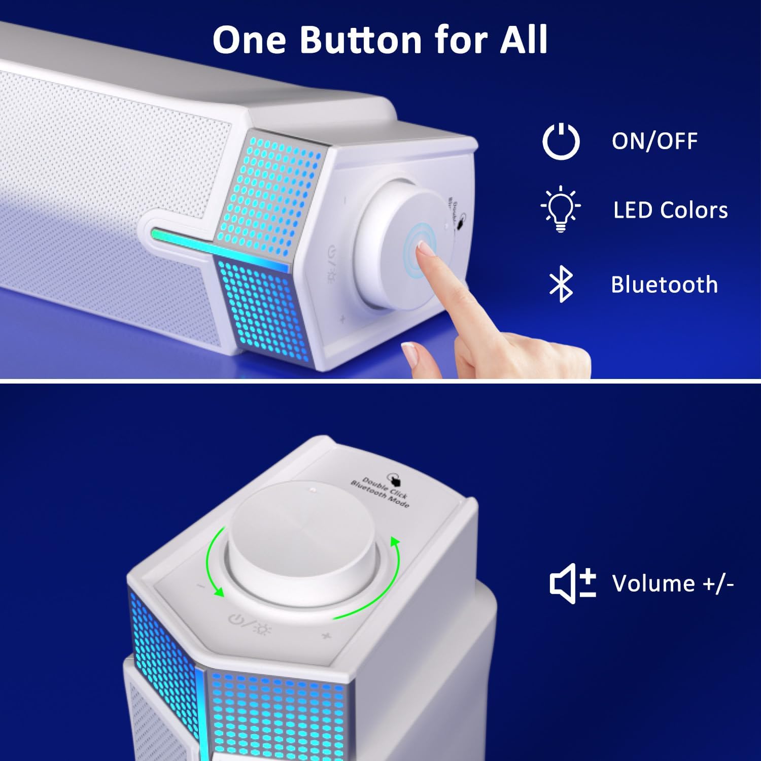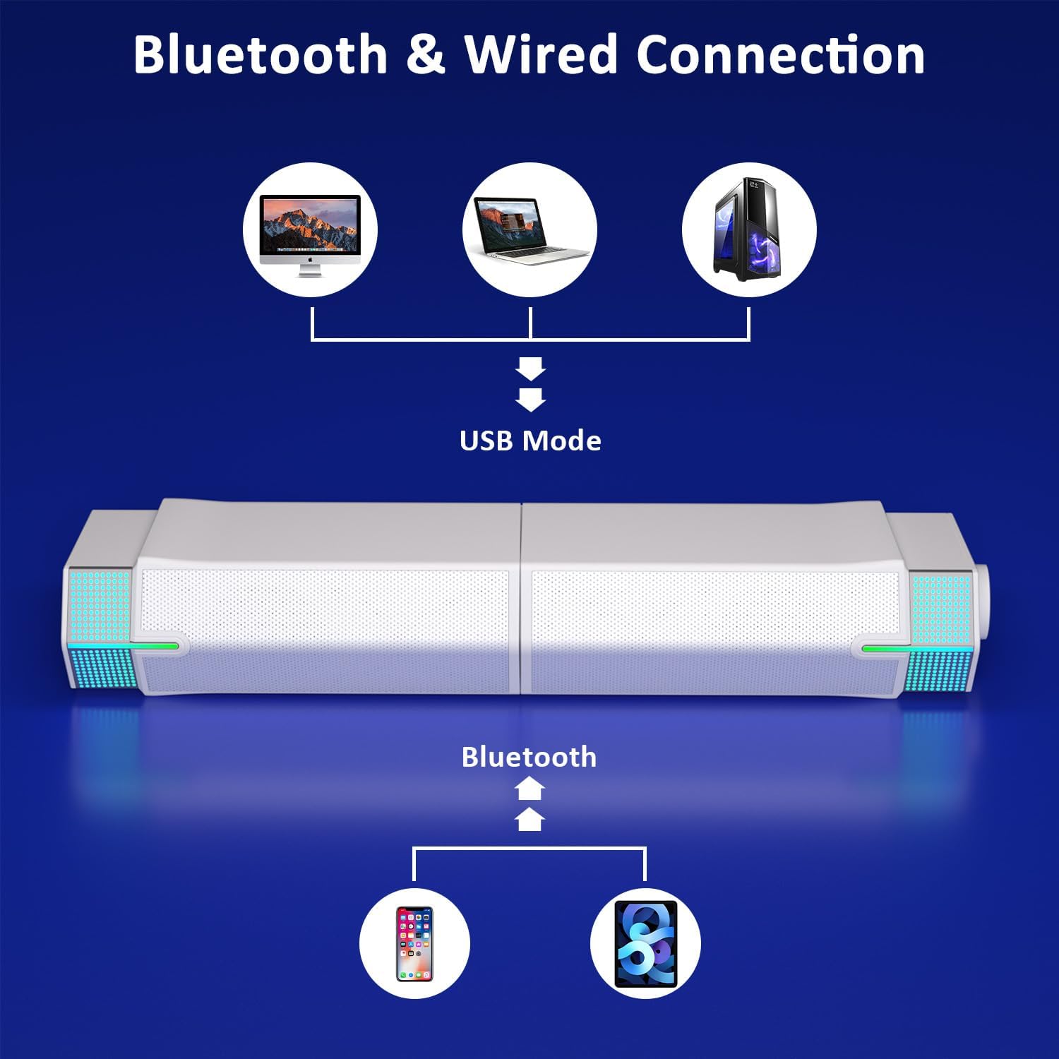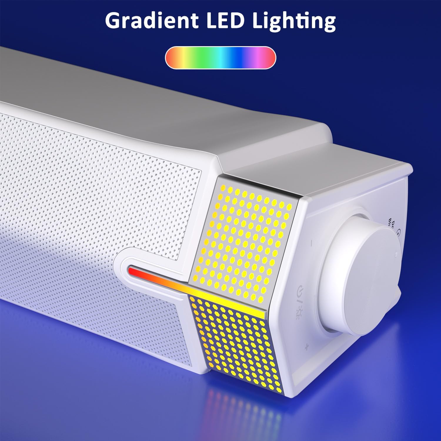 Jeecoo M20 Bluetooth Computer Speakers for PC Desktop Monitor, Gaming PC Sound Bar - Wired USB-Powered, Superb Stereo Sound, with LED Lighting (White)