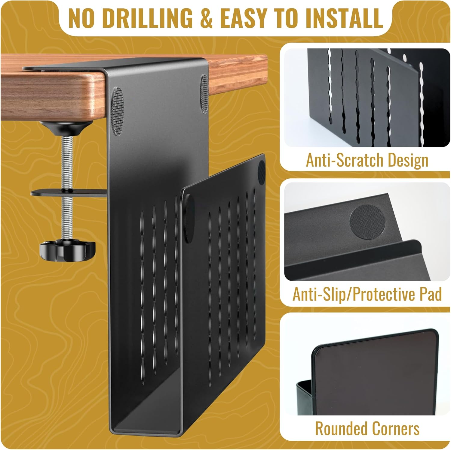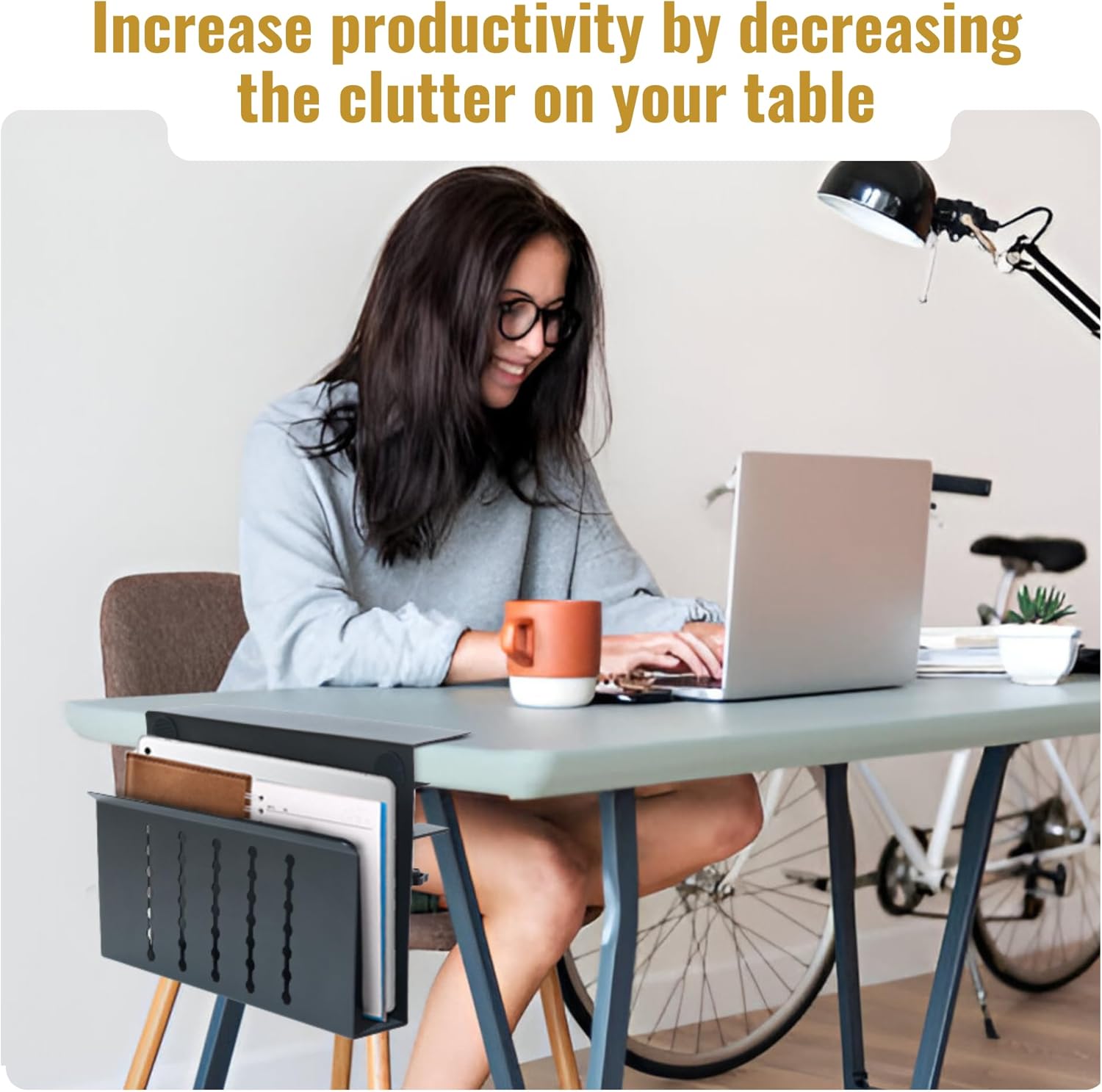 - VERSATILE DESK SIDE STORAGE WITH ANTI-SLIP BASE & CLAMP PADS: Our metal hanging desk organizer is crafted from high quality stainless steel, This under desk laptop holder securely holds laptops, tablets, cables, notebooks & more, preventing scratches and slips.