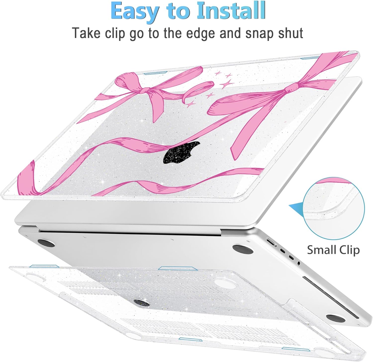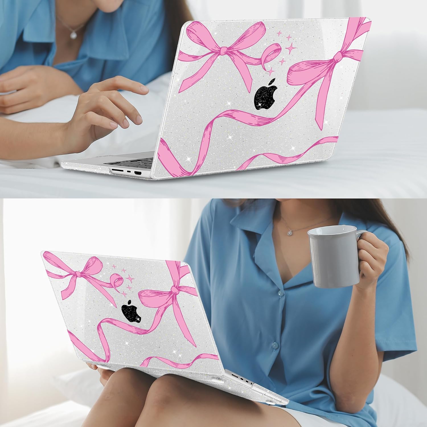 Mektron Case for MacBook Pro 16" M4 A3403 A3186 M3 A2991 M2 A2780 M1 A2485 (2021/2023/2024) Pro/Max with Touch ID, Hard Shell Plastic Laptop Cover Keyboard Cover Screen Protector, Pink Bows C246