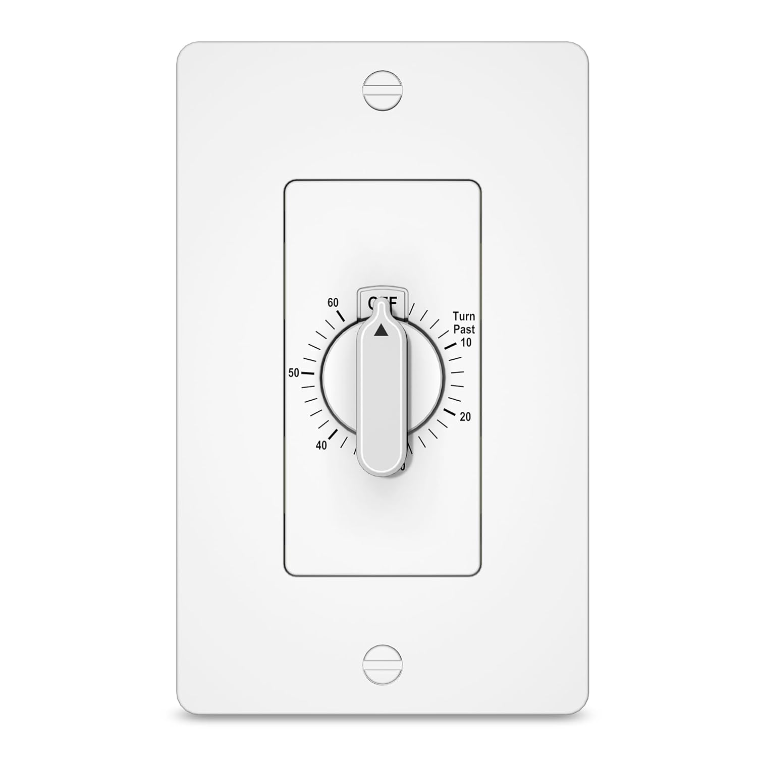 HBN 60 Minute Spring Wound Countdown Timer Switch for Bathroom Exhaust Fan, in-Wall Mechanical Light Switch Timer, No Neutral Required, Wall Plate Included, ETL Listed
