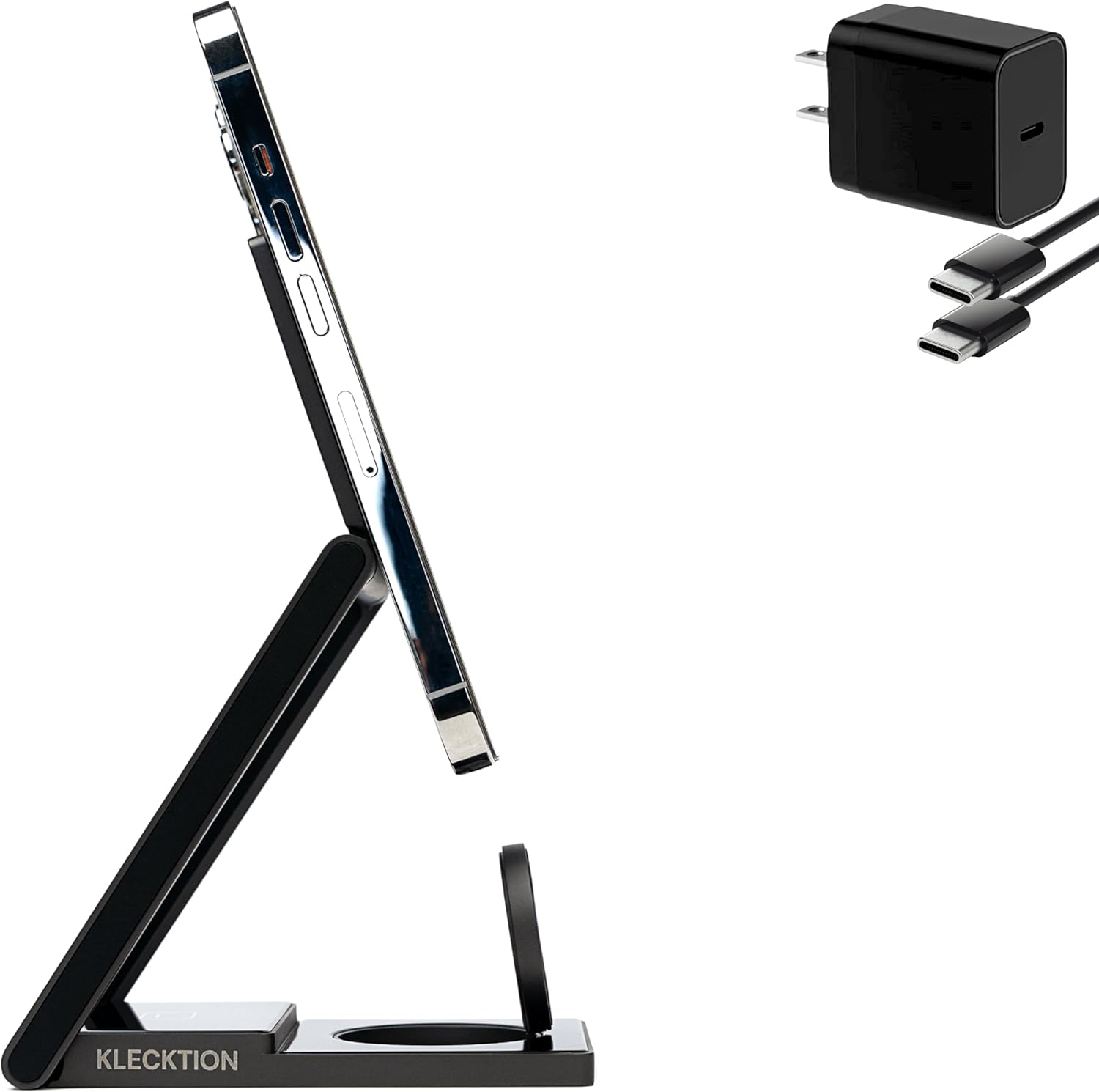 - [N52 Super Magnet] - Equipped with powerful N52 magnets, the KLECKTION Apple wireless charging station securely holds your devices in place, ensuring a stable and efficient wireless charging process every time.