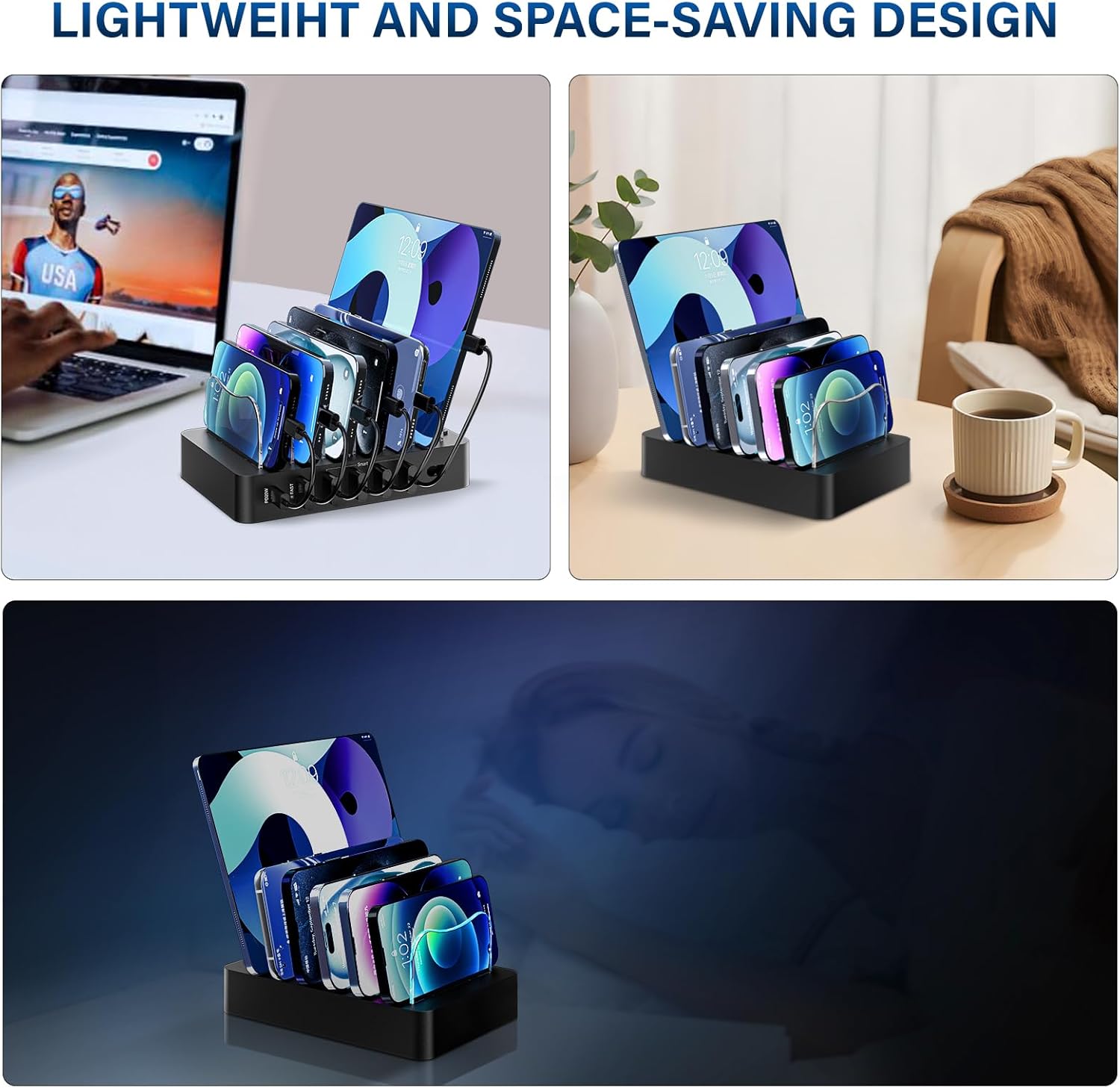 - 【Widely Compatibility USB Charging dock】 The multiple desk charger station is compatible with your android phones, smartphone, tablets, earbuds, kindles, and other consumer electronics. Can be used at home,family,office,classroom,kitchens,chool,restaurant, and hotels, Idea-gifts for Christmas, Birthdays, Thanksgiving, Housewarmings