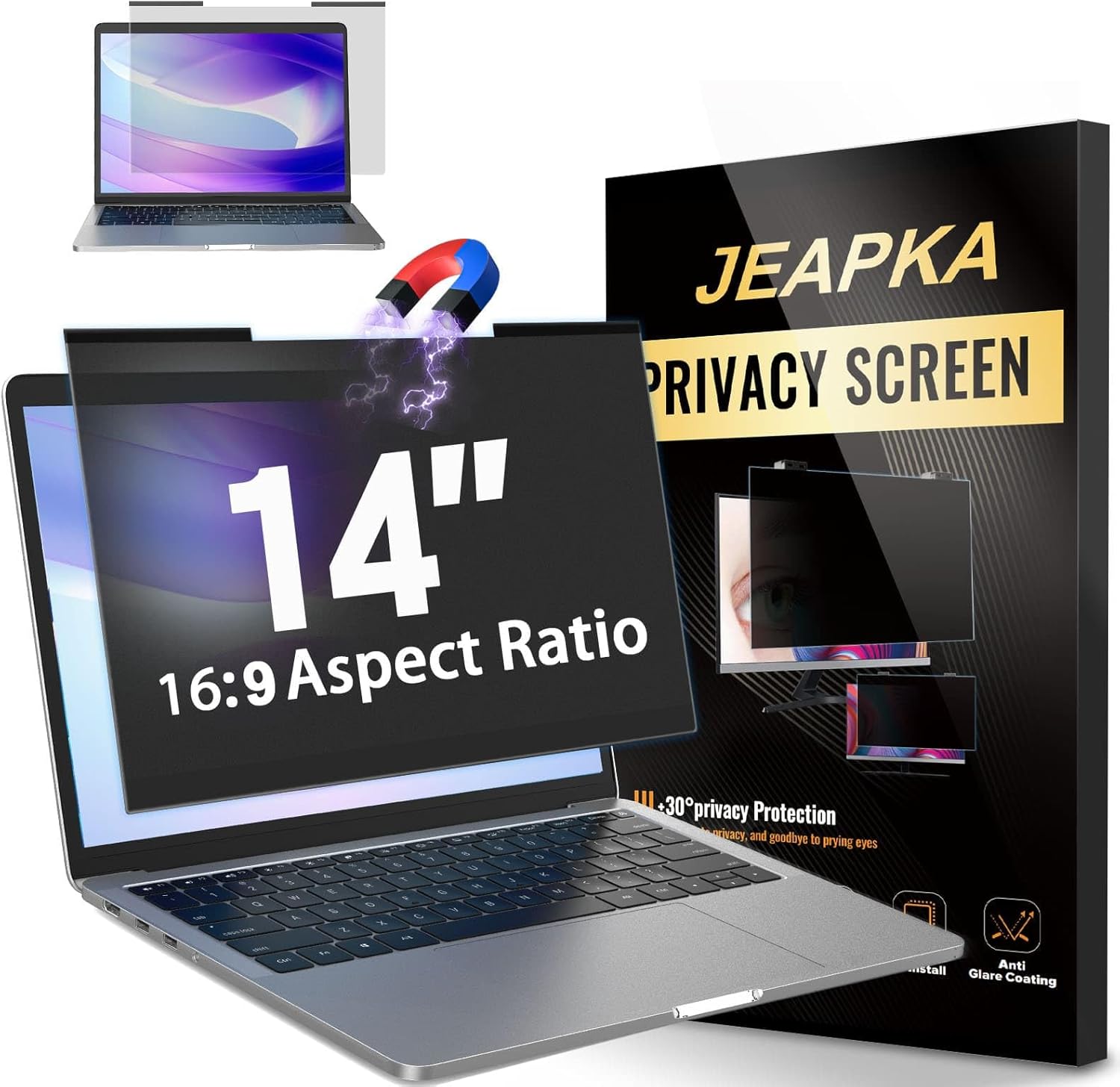Magnetic Laptop Privacy Screen Filter 14 inch for 16:9 Widescreen Computer Monitor, Removable Anti Blue Light Privacy Shield, Anti-Glare Protector