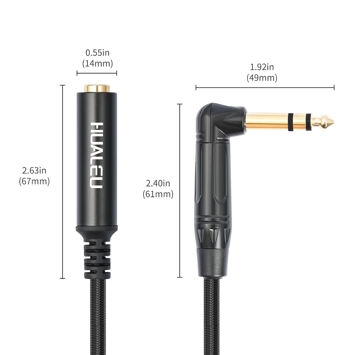 - Fiber Braided Protection: HUALEU 6Feet Right Angle 6.35mm Male to Female TRS Stereo Audio Cable is equipped with fiber braided protective mesh to ensure high tensile strength and long service life