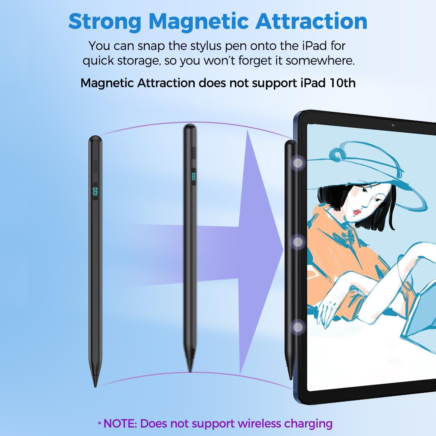 iPad Stylus Pencil(5 Extra Tips) with Magnetic Attachment,USB-C Faster Charge,Tilt Sensitivity Palm Rejection,Compatible with2018-2025 iPad ProM4/12.9/11,Air M3/M2/3/4/5,iPad6-11,Mini5/6/7Gen(Black)