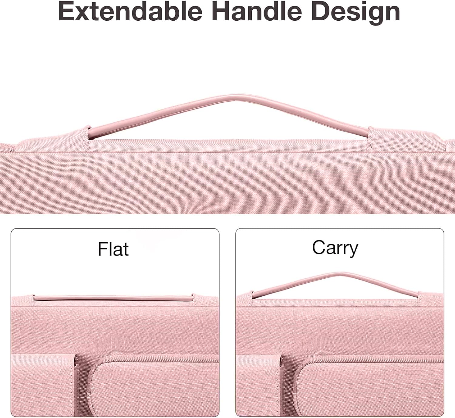 MOSISO 360 Protective Laptop Case 13.3 inch, 13-13.3 inch Laptop Sleeve Compatible with MacBook Air/Pro 13 / Pro 14, HP Dell ASUS Lenovo, Side Open Bag with 2 Raised&1 Flapover Pockets, Pink