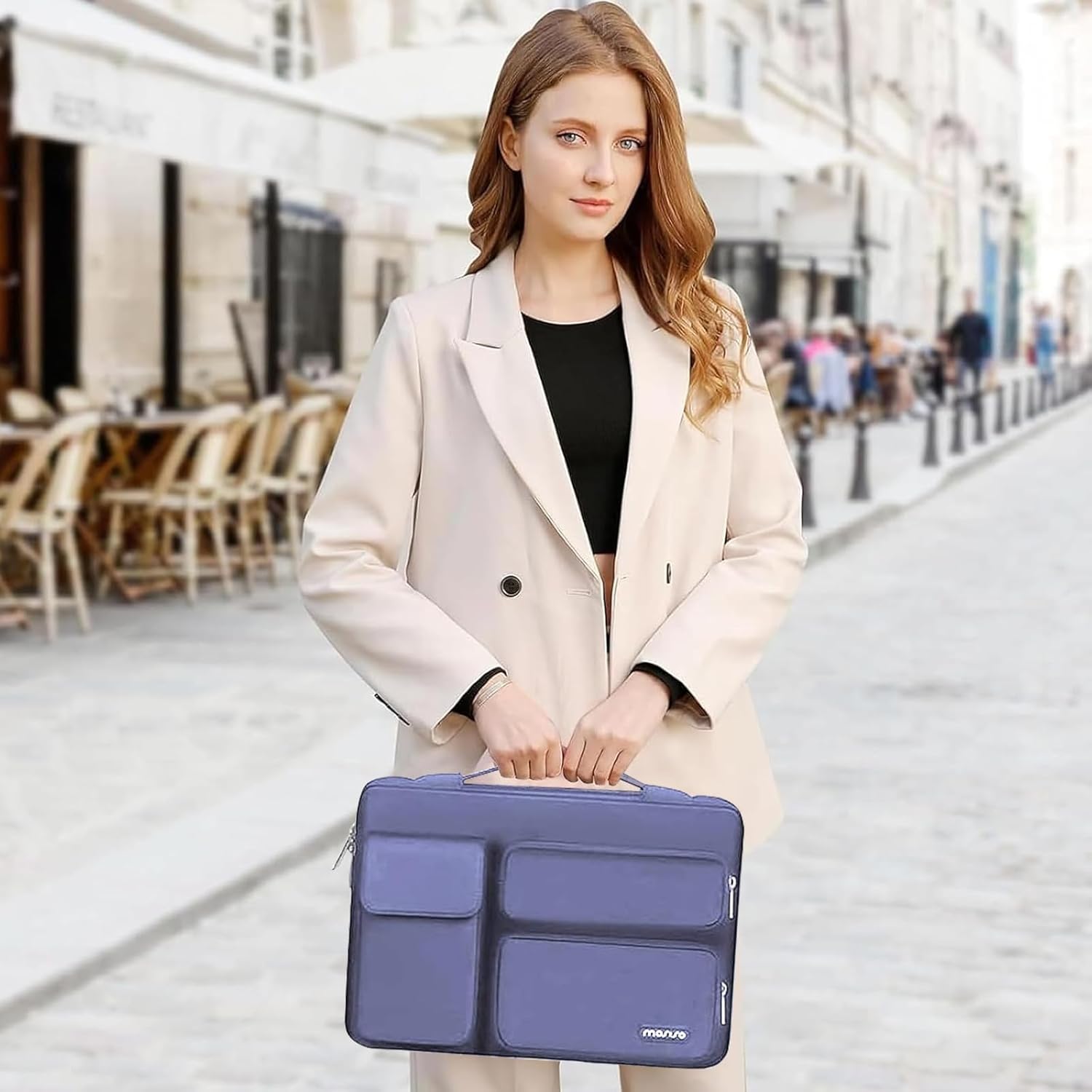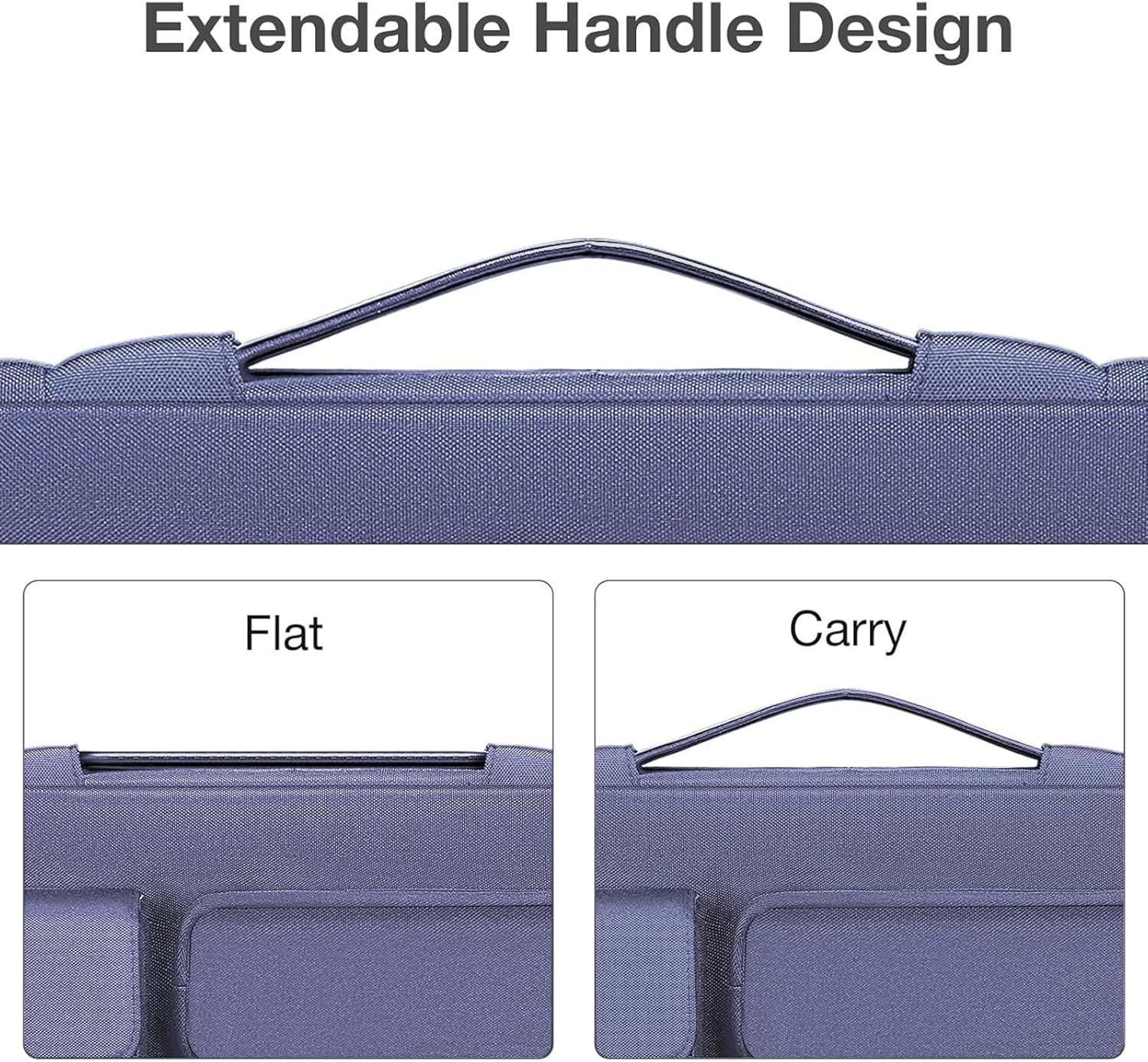 - 360 degree all around protective reinforced interior edge briefcase carrying case bag protect your laptop from any accidental dropping. Extendable handle design makes it to carry your laptop around in comfort, you can also tuck away the handle. Side opening zipper design, avoid accidental dropping of your laptop while carrying. 2 raised & 1 flapover pockets are convenient for quick-access and store cell phone, wallet, keys and other small items.