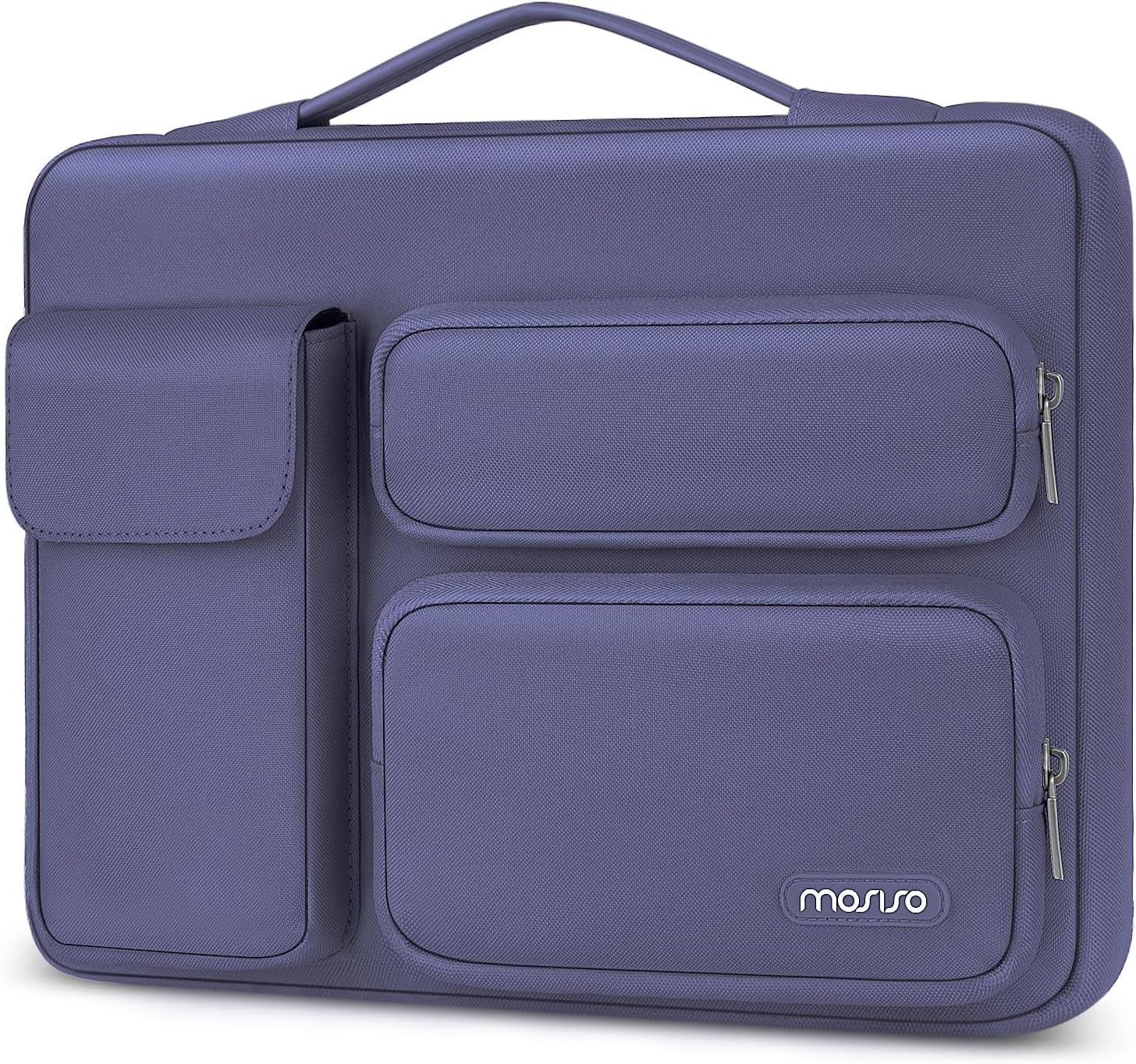 MOSISO 360 Protective Laptop Case 13.3 inch, 13-13.3 inch Laptop Sleeve Compatible with MacBook Air/Pro 13 / Pro 14, HP Dell ASUS Lenovo, Side Open Bag with 2 Raised&1 Flapover Pockets, Lavender Gray