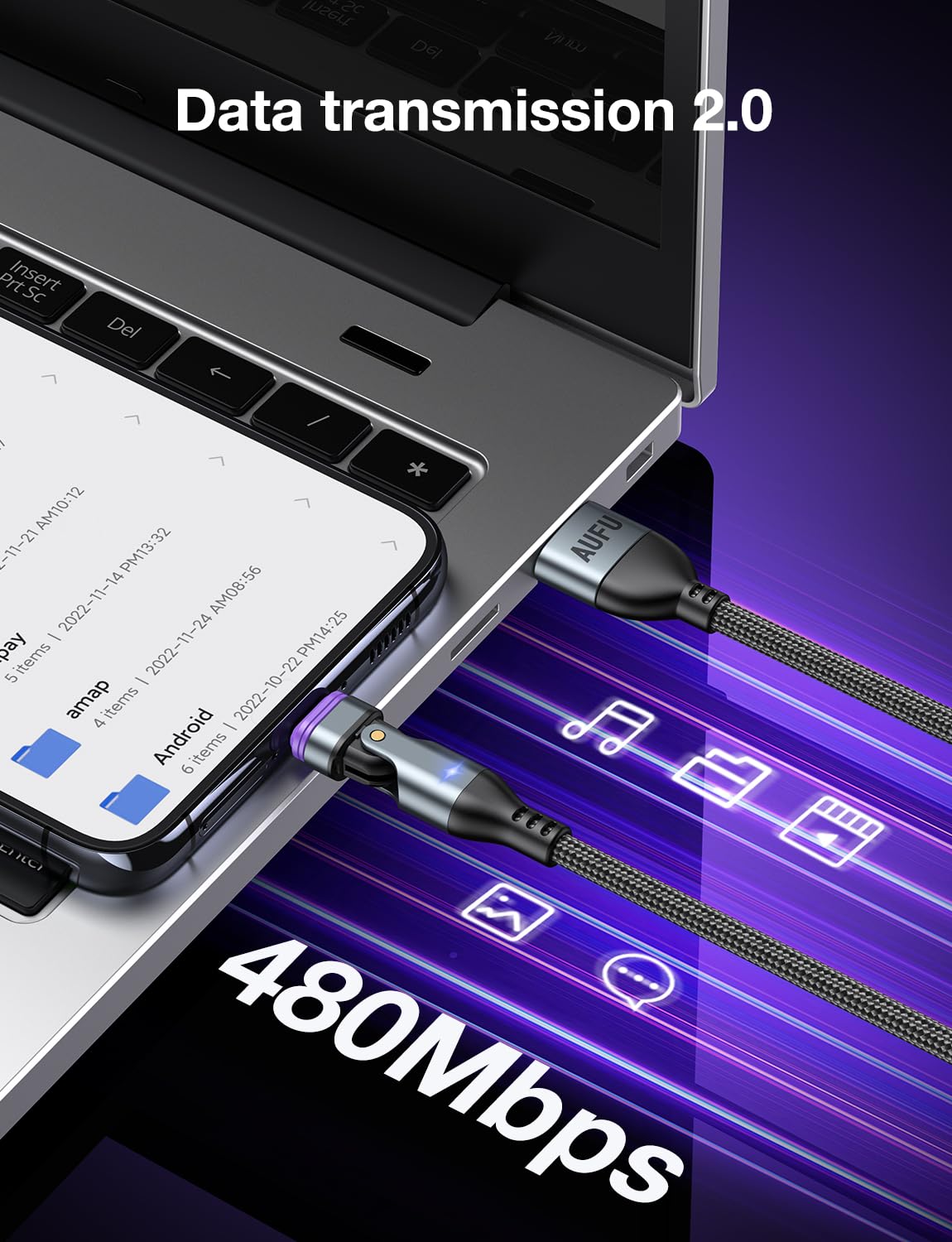 - 480Mbps Magnetic Data Cable: This is both a magnetic fast charging cable and a magnetic USB C data cable with 480Mbps data transmission 2.0, 2-3 times faster than normal WIFI transmission. Tip: This magnetic charger cable does not support video transmission