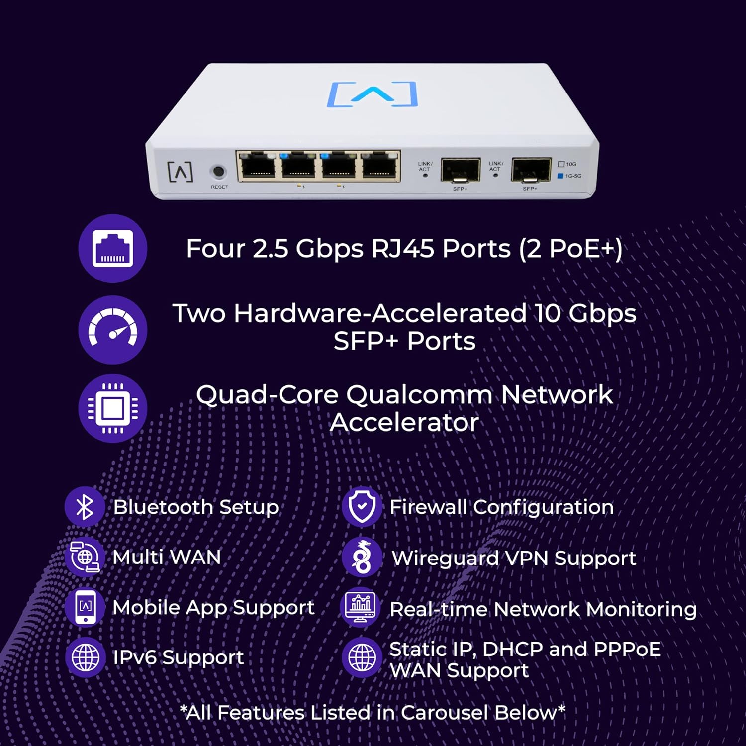 Alta Labs Route10 | 10 Gig Multi-WAN Router | High-Performance Qualcomm Quad-Core Hardware-Accelerated VPN Router | 2 10 Gbps SFP+ and 4 2.5 Gbps Ports | Real-Time Stats | Load Balancing | 40W PoE+