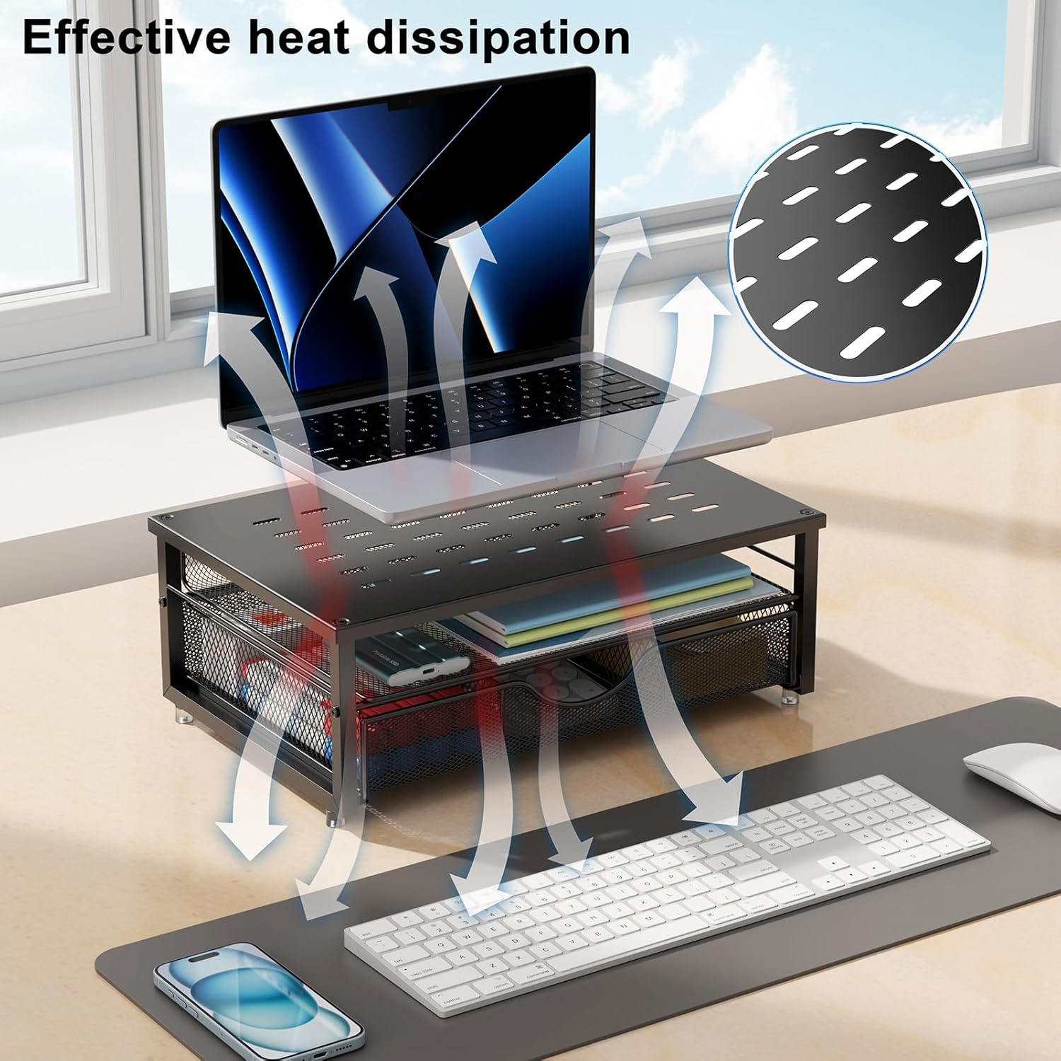 - 【Powerful and stable】: The monitor riser is designed with ventilated heavy steel plates and steel legs, which has a very large load-bearing capacity and effectively prevents equipment from overheating. Non-slip rubber pads provide stability during work.