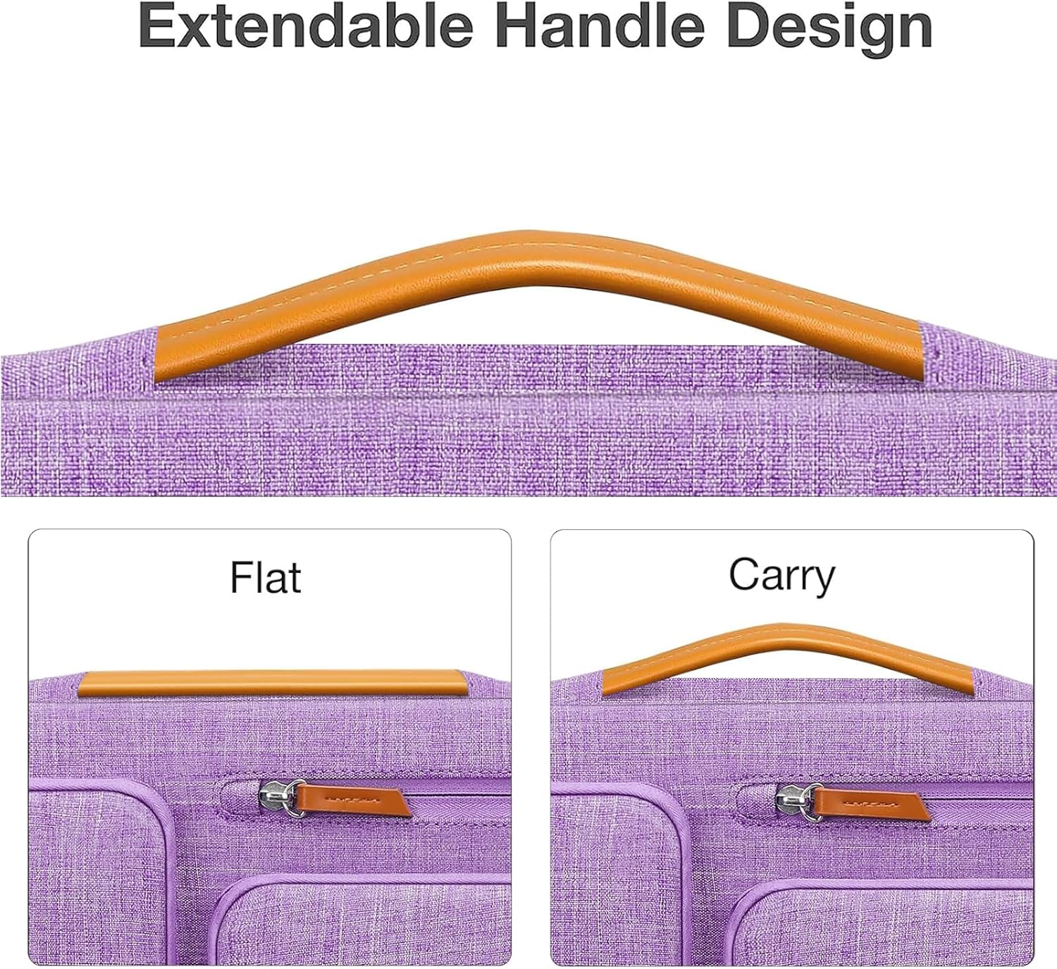 - 360 degree all around protective reinforced interior edge briefcase carrying case bag protect your laptop from any accidental dropping. Extendable handle design makes it to carry your laptop around in comfort, you can also tuck away the handle. Side opening zipper design, avoid accidental dropping of your laptop while carrying. 4 front zipper pockets provide enough space to keep mouse, earphone, pens and notepads, offering added convenience.