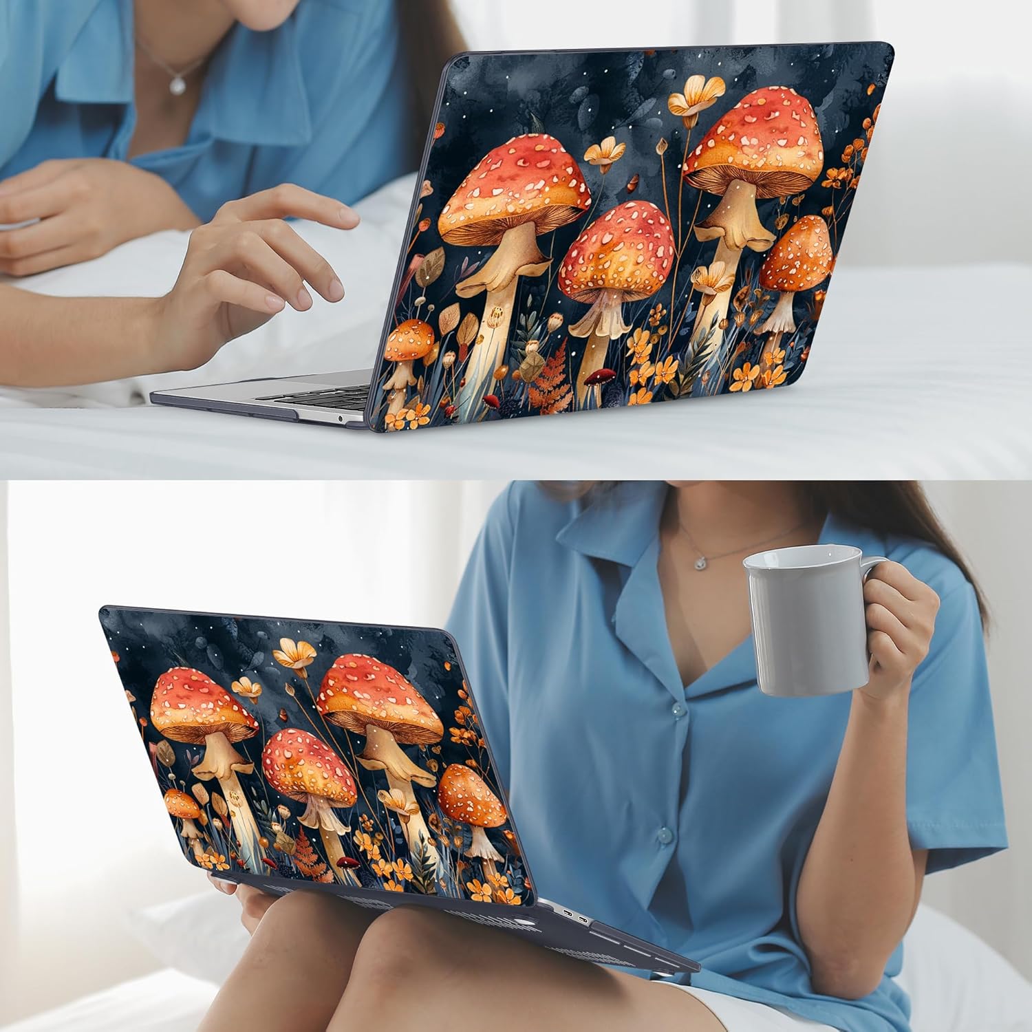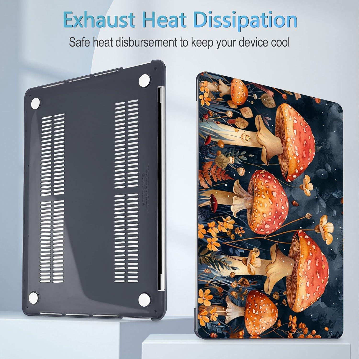 Mektron for MacBook Air 13 Case A1466/A1369 (2010-2017 Release), Snap-on Plastic Hard Shell Cover for MacBook Air 13.3 inch with Keyboard Cover, Mushrooms