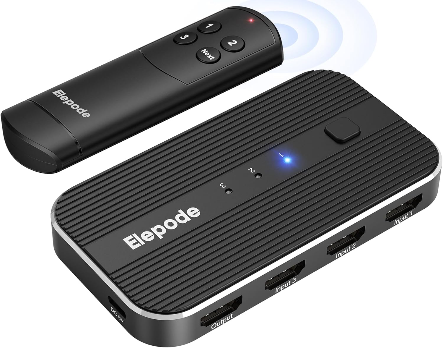 HDMI Splitter with Remote, 3 in 1 Out 4K@60Hz Elepode HDMI Switch, HDMI 2.0 Switch Box Hub for 3D, HDCP2.2, HDR, Compatible with Xbox, PS5/4/3, Fire Stick Roku Blu-Ray Player