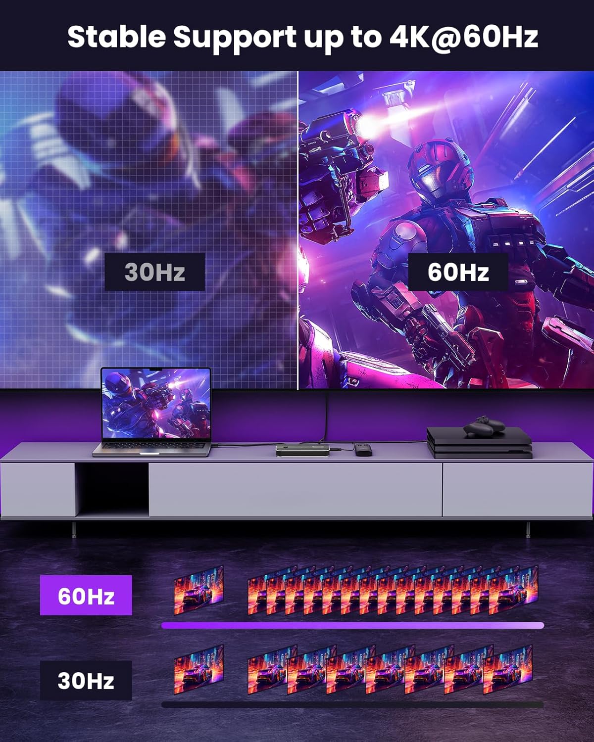 - 【4K@60Hz High Definition Resolution Image Display】3 Ports HDMI Hub support HDMI Output Video:4K@30Hz, 25601440@120Hz, and 19201080@240Hz. Perfectly adapted to 3D, UHD, and HDCP2.2 signals. Provide you with a visual feast and an amazing gaming experience.