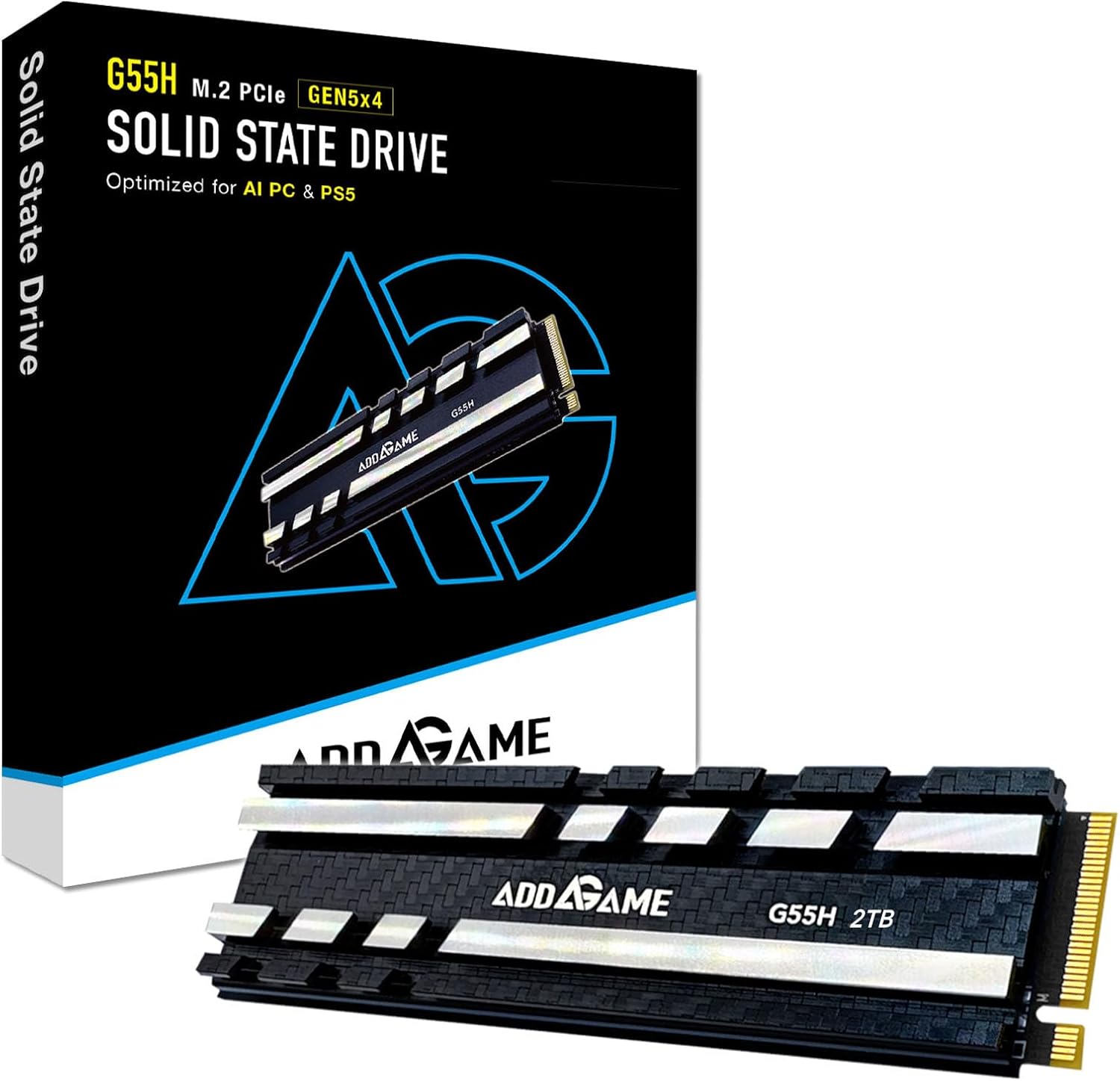 Addlink G55H 2TB PCIe 5.0 Gen5 NVMe M.2 SSD with Heatsink - Up to 10,300MB/s - Game Ready - Internal Solid State Drive - Compatible with PCs and PS5 (ad2TBG55HM2P)