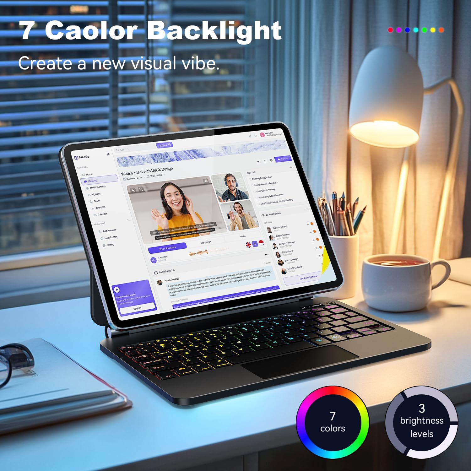 - 7-Color Backlit Keyboard Case for iPad 11th/10th Gen:From dawn to dusk, adapt effortlessly! Adjusting 7 backlight and 3 levels of brightness ensures clear visuals in every setting, enhancing your immersive experience.