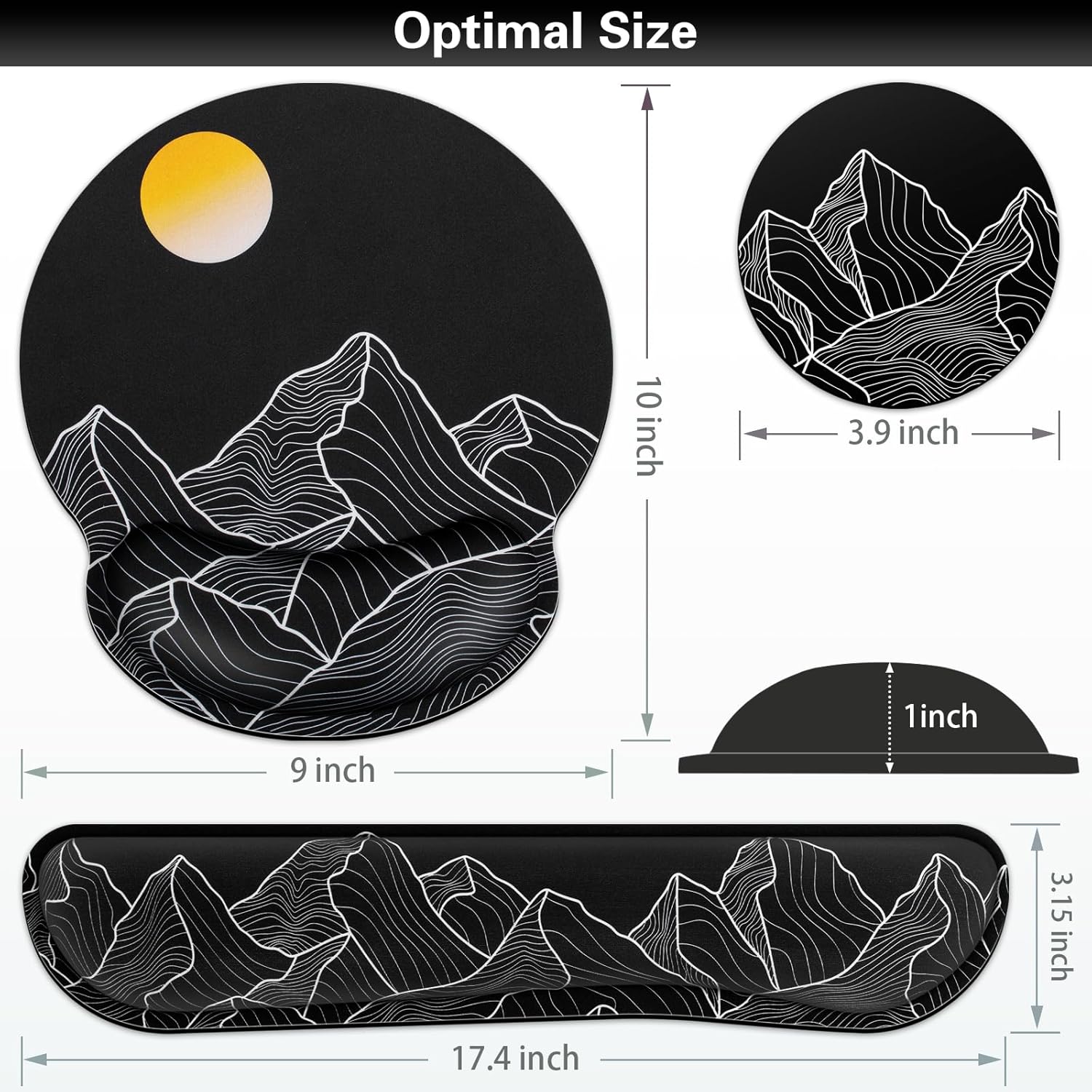 - 【3-IN-1 Keyboard Wrist Rest】-The size of the mouse pad with wrist guard is 10x9 in, the size of the keyboard wrist rest cute guard is 17.2x3.3 in,and the diameter of the cup pad is 3.9 in.The Mousepad with wrist support can be used with notebook computers,desktop computers and game consoles,and is suitable for office,home,dormitory or other occasions.