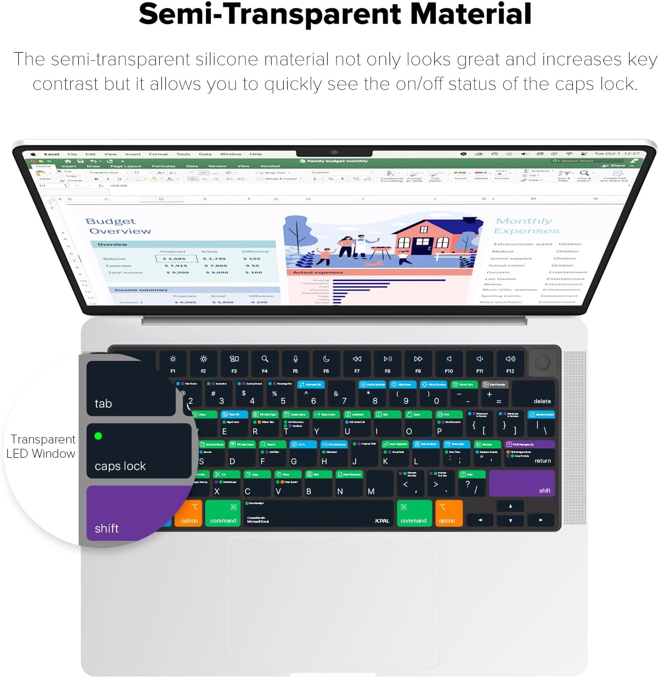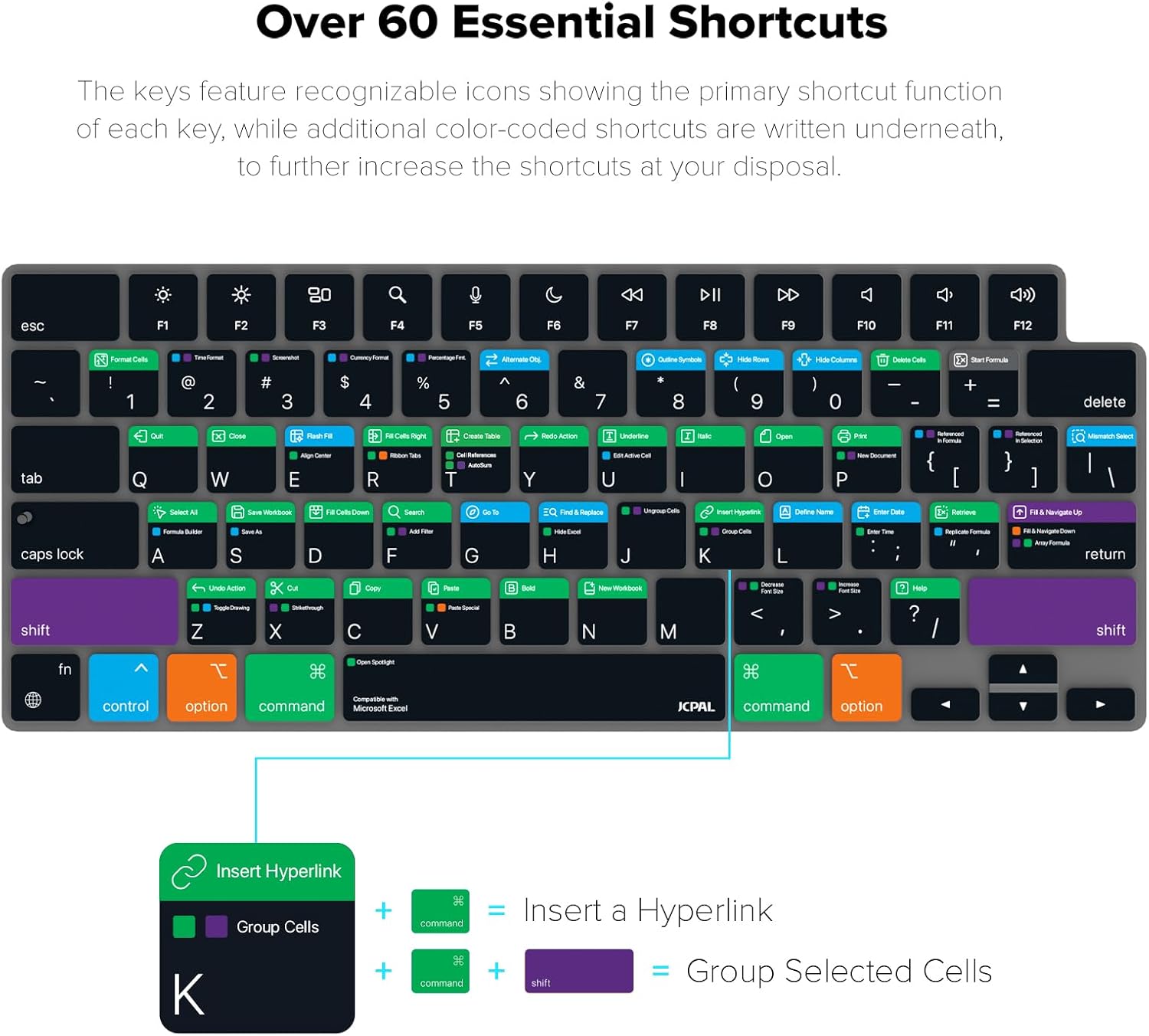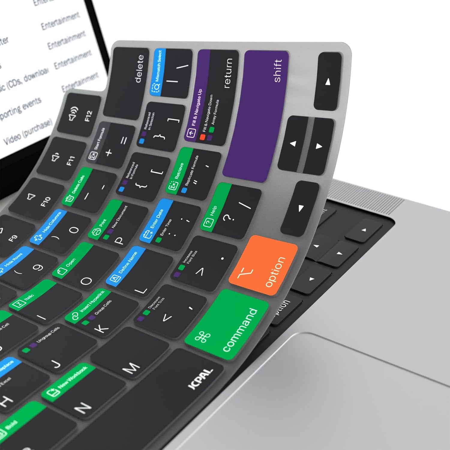 JCPal Microsoft Excel Shortcut Guide Keyboard Cover for Apple MacBook Pro 14 inch and MacBook Pro 16 inch (M1-M4 Models) and MacBook Air 13 inch and MacBook Air 15 inch (M2-M4 Models) (US-Layout)