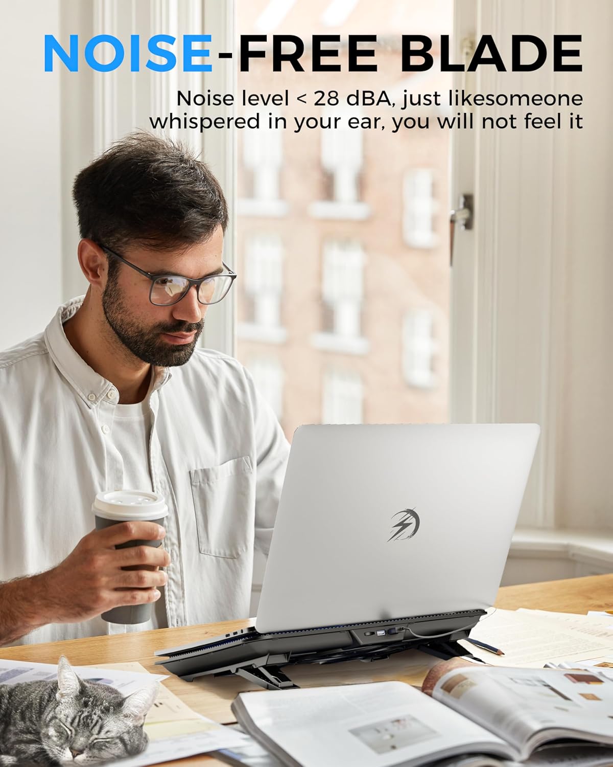 - Wide Laptop Compatibility: Supports 13"-17.3" pc laptops, providing versatile cooling for CPU GPU productivity setups. The cooling pad for computer laptop can also work well with routers, consoles, etc.