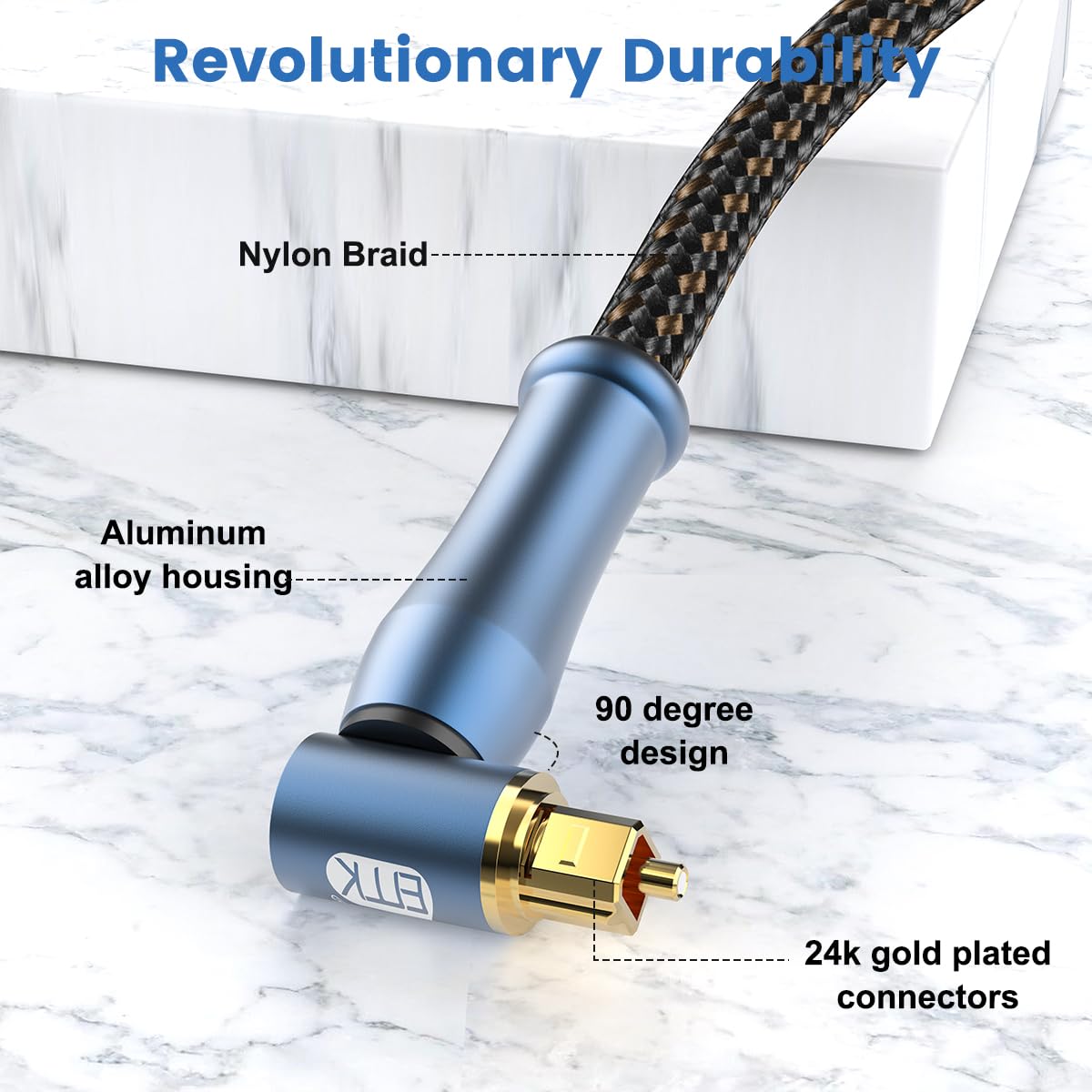 - Special Feature : 24K gold-plated connectors, 100% signal transmission, Fiber Optic,90 Degree Design,Nylon Braided