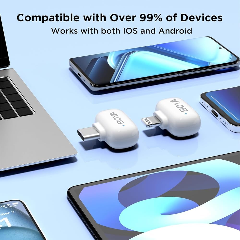 BOYA mini Wireless Microphone for iPhone/Android/PC/Tablets with USB C/Lightning Plug, MFi Certified, Noise Reduction, AI Voice Changer, 30H Battery Life with Charging Case for Video Recording Podcast