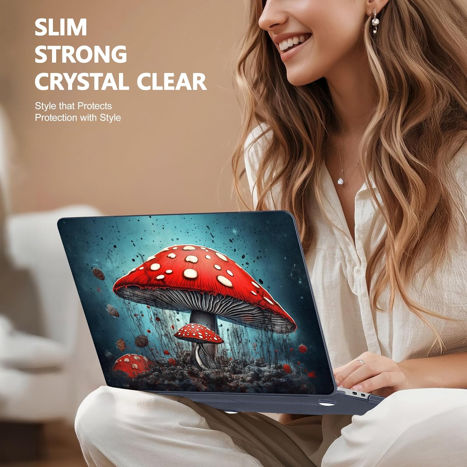 May Chen for New MacBook Pro 13 Case 2022 2020 Release (A2338 M1 M2/A2289/A2251), Plastic Crystal Hard Shell Case Cover with Keyboard Cover for MacBook Pro 13-inch Touch Bar, Mushrooms