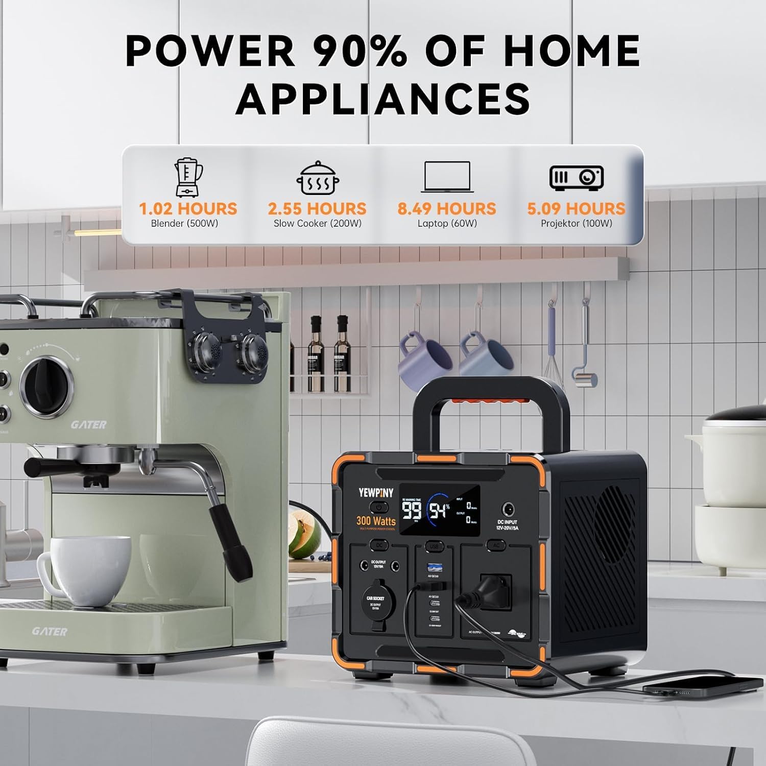 - 【Portable and Solar-Ready Design】 Weighing just 7.17 lbs with a built-in handle, the EM300 is easy to carry for outdoor adventures. It supports solar charging and pass-through charging, allowing you to recharge while powering devices, making it ideal for camping, road trips, and emergencies.