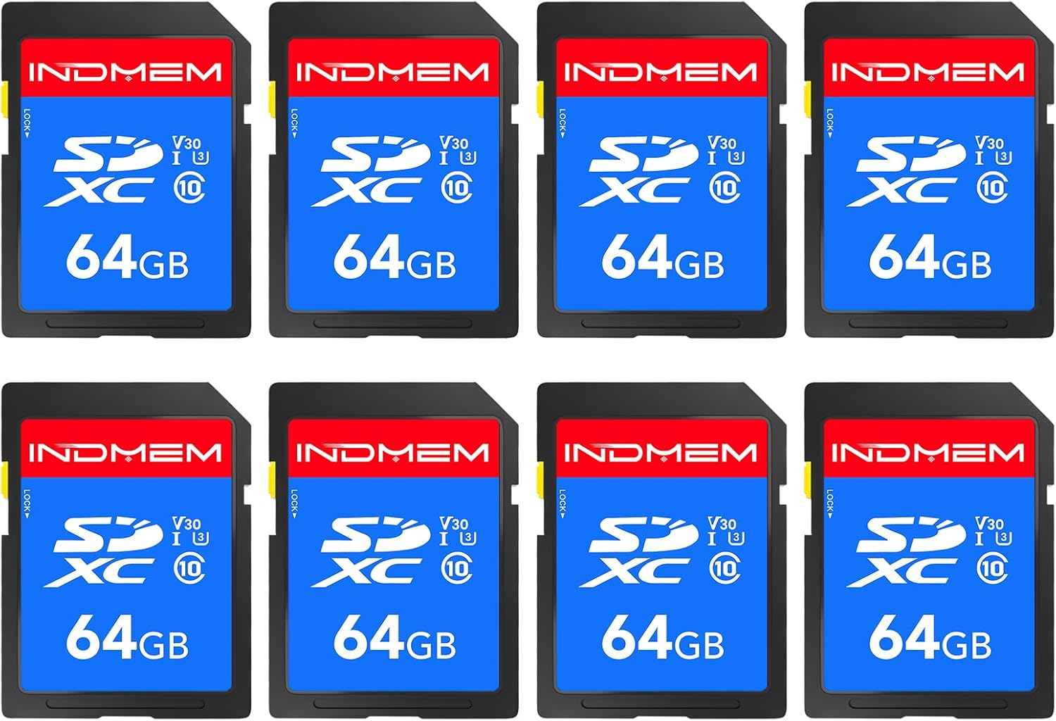 INDMEM SD Card 64GB 8-Pack, Class 10 64GB High Speed up to 90M/S Full HD Video Flash Memory Card MLC Standard Secure Digital Cards Camera Cards