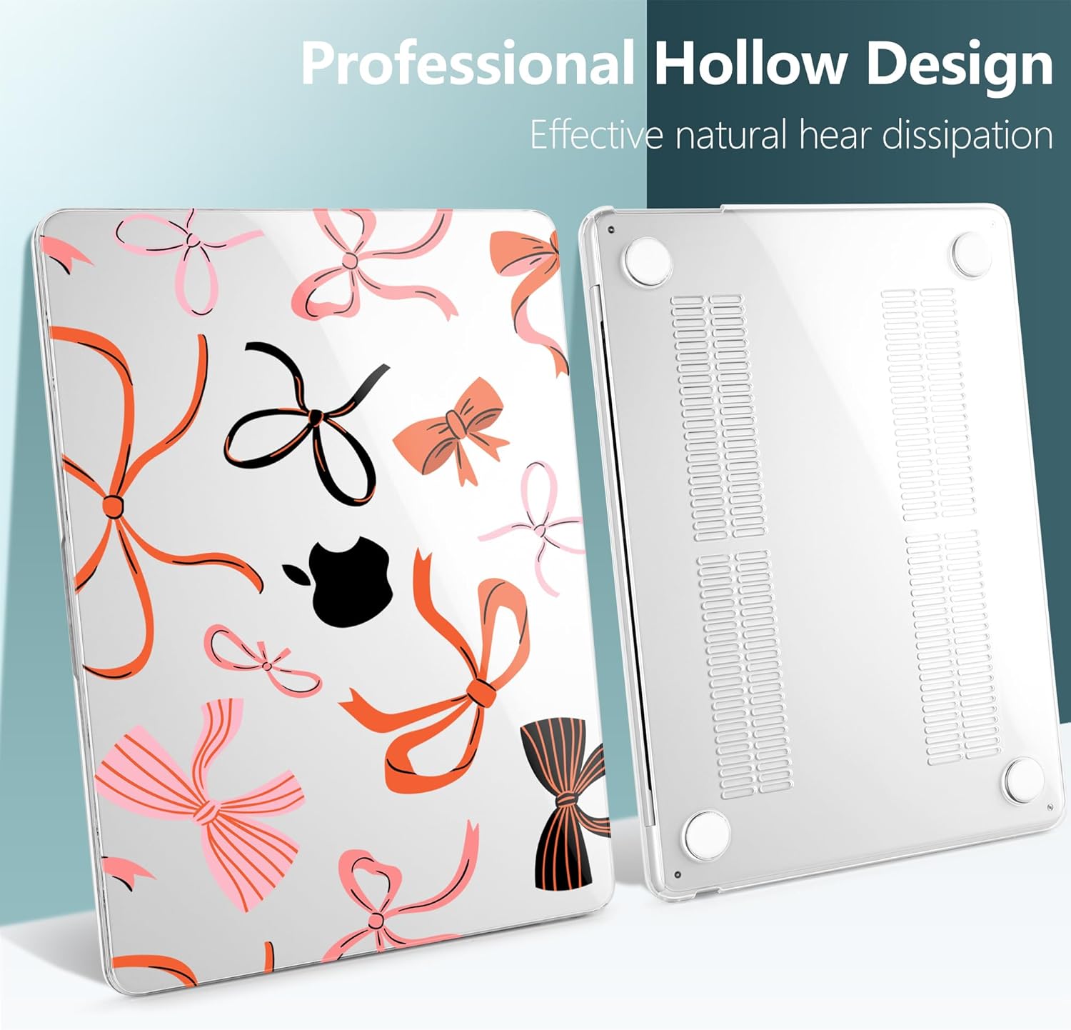 TWOLSKOO Compatible with M4 MacBook Air 13.6 inch Case 2025-2022 Release M4 A3240 M3 A3113 M2 A2681, Plastic Hard Shell & Keyboard Cover & Type C Adapter & Screen Protector, Red Bows