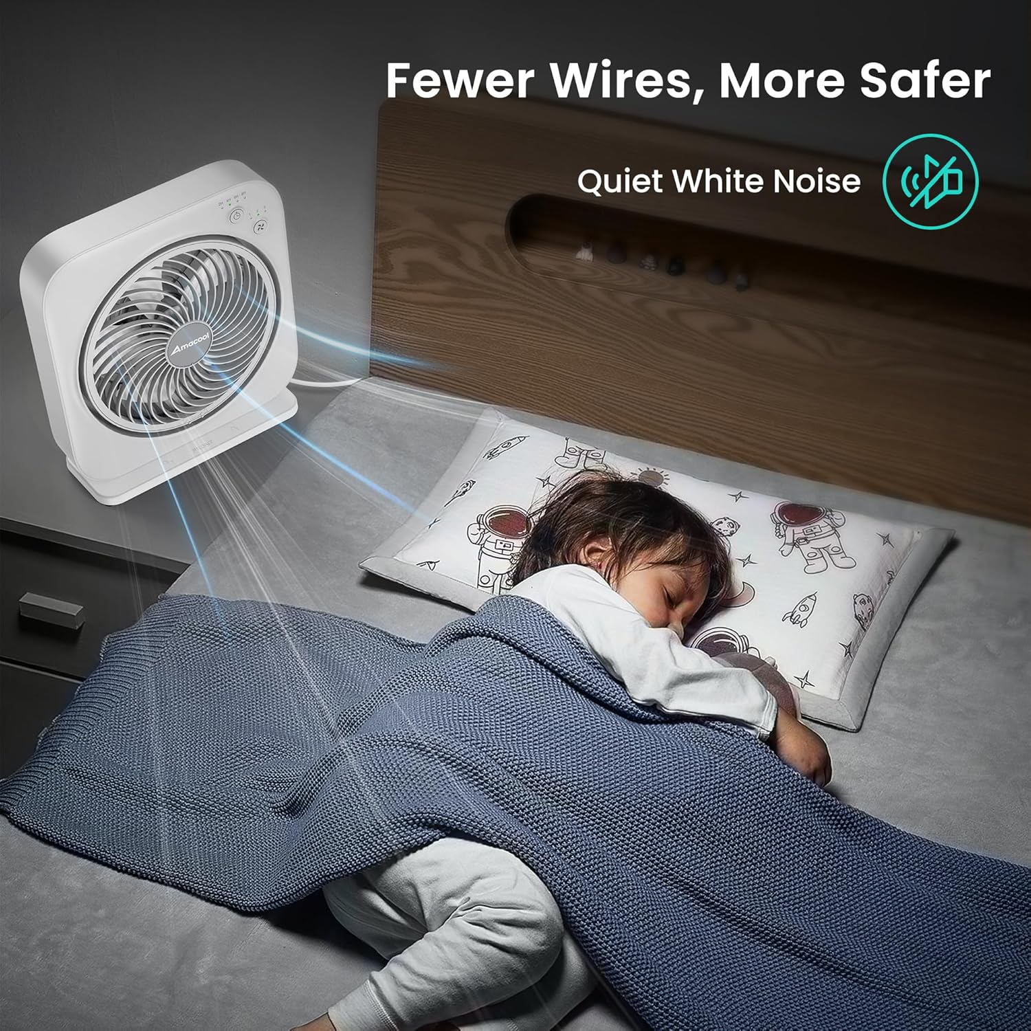 AMACOOL Table Fan, 12 inch Box Fan with 3 Adjustable Speeds & 8HRS Timer, 270° Pivoting Quiet Air Circulator, Desktop Fan for Bedroom Bathroom Kitchen Office, AC Adapter Included-White