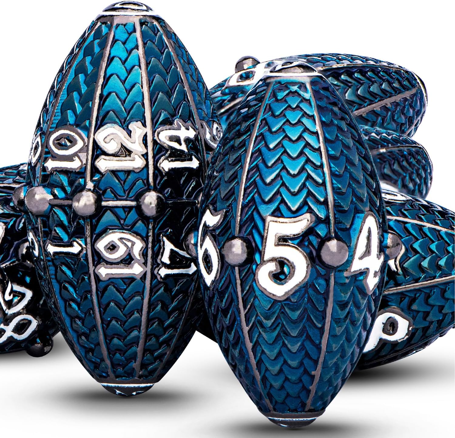 ARUOHHA DND Metal Dice Black Blue Dragon Egg Dice with Metal Box, Role Playing Game Polyhedral D and D Dice Set D20 D12 D10 D8 D6 D4