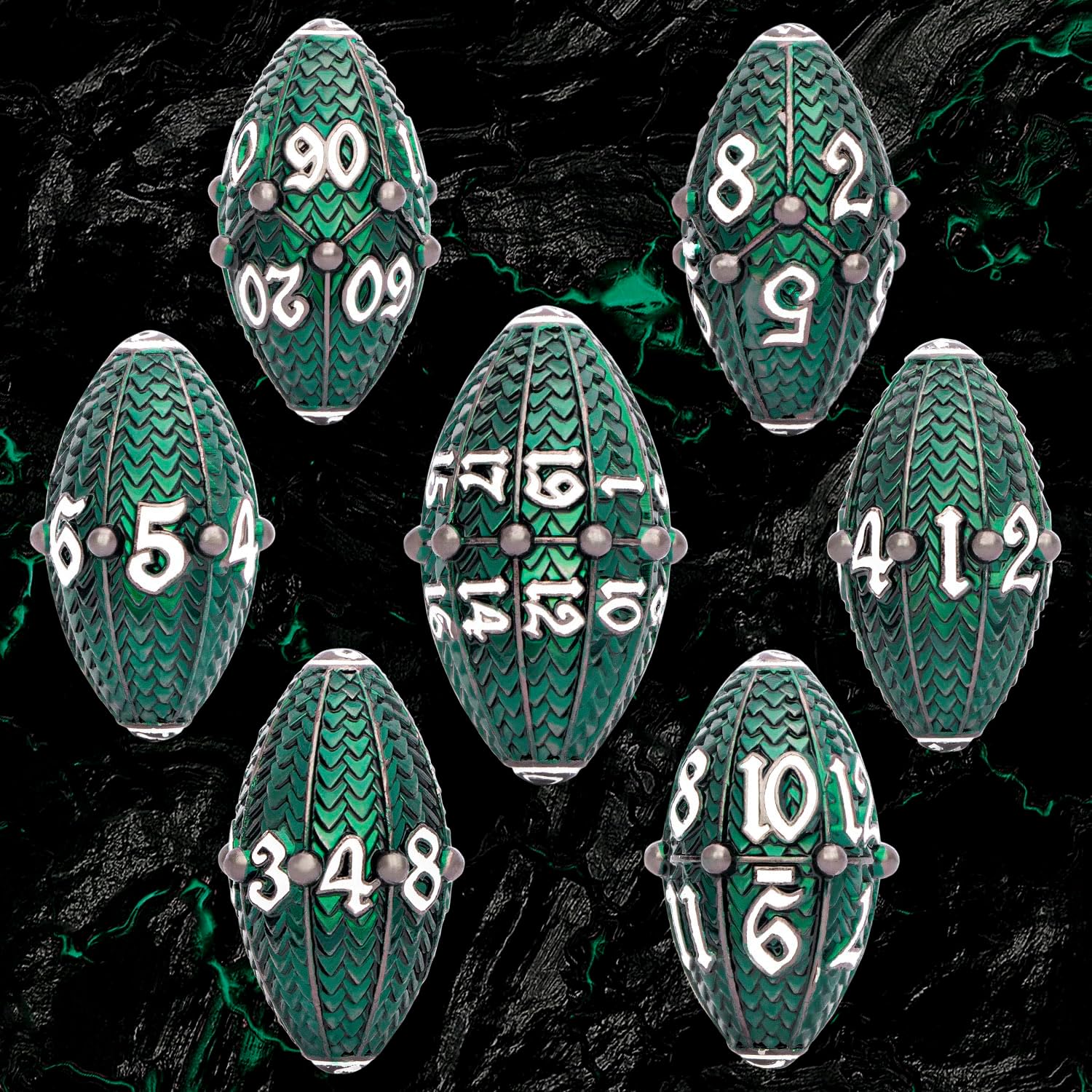 ARUOHHA DND Metal Dice Black Green Dragon Egg Dice with Rotating Dragon Egg Shell, Role Playing Game RPG Polyhedral D and D Dice Set D20 D12 D10 D8 D6 D4