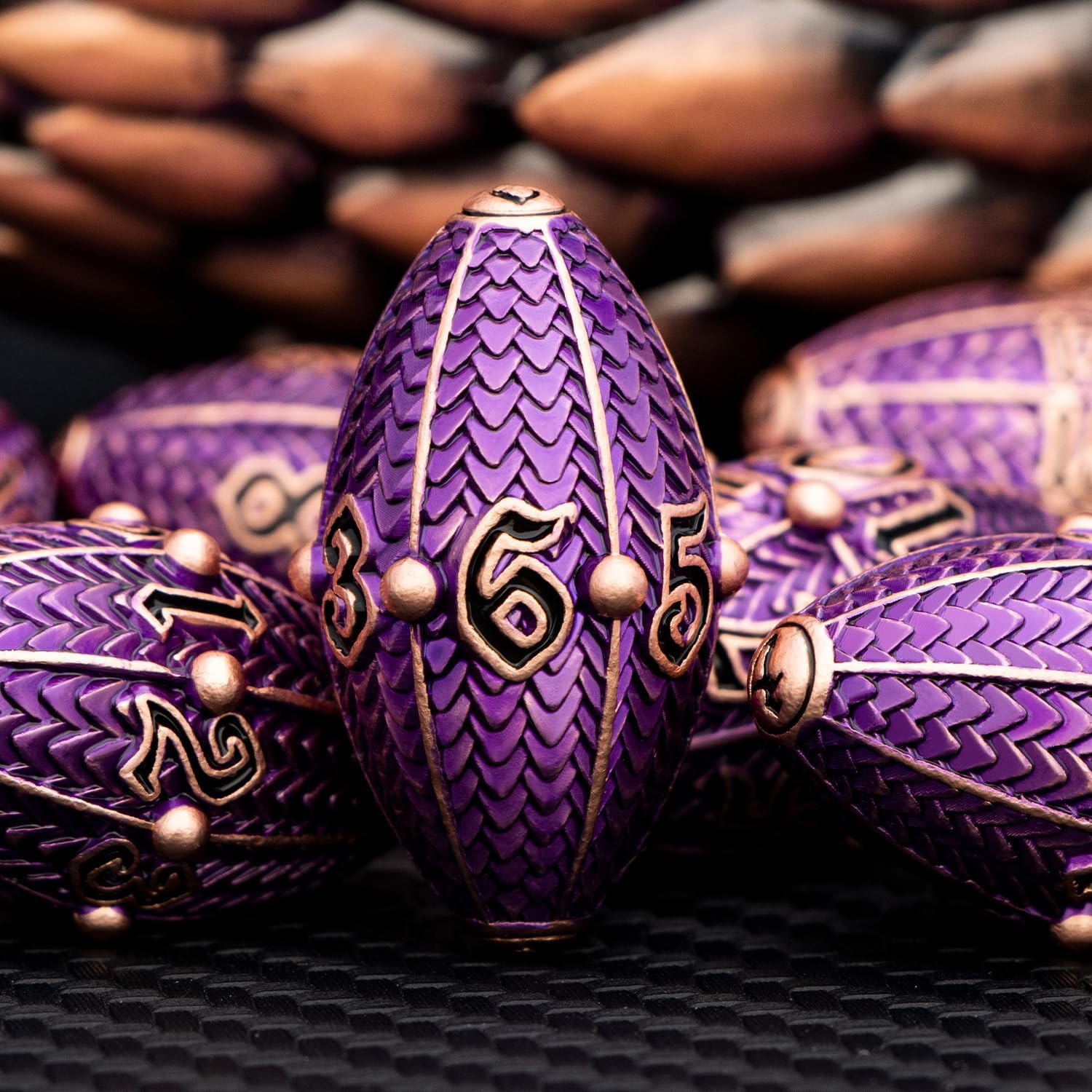 ARUOHHA DND Metal Dice Copper Purple Dragon Egg Dice with Rotating Dragon Egg Shell, Role Playing Game RPG Polyhedral D and D Dice Set D20 D12 D10 D8 D6 D4