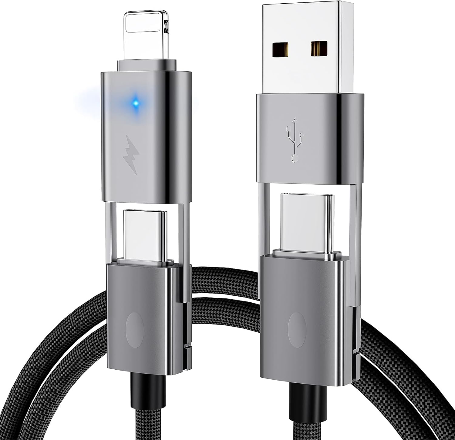 - New Upgraded 4 in 1 Multi Charging Cable: Simplify your charging setup with our versatile 4-in-1 usb-c cable. It combines 4 ports - USB-C to L port, USB-C to USB-C port,USB-A to USB-C port and USB-A to L port. Charge and sync your devices without the hassle of switching between multiple cables. (Note: If your devices want to achieve fast charging, please use a USB C power adapter not the USB charger)