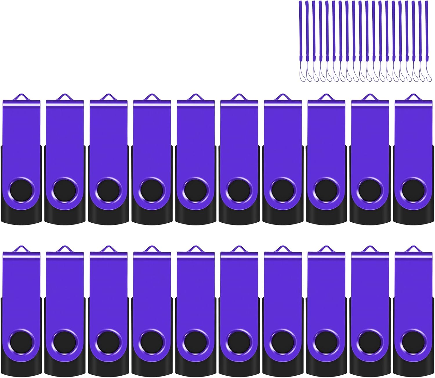 EASTBULL Flash Drive Bulk 2GB USB 20 Pack with Lanyards USB 2.0 Thumb Drive Bulk Memory Stick Swivel Pen Drive for Storage and Backup 2 GB 20 Pack, Purple