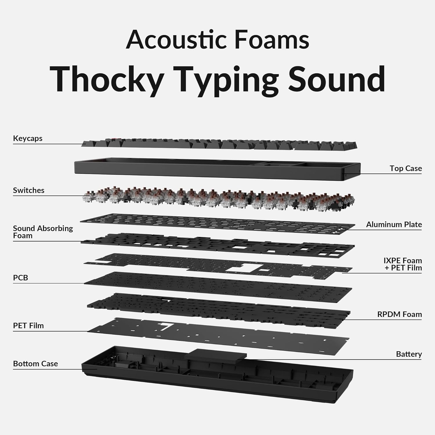 - The K10 Version 2 is a wireless mechanical keyboard with a full-size (100%) layout. It supports Bluetooth 5.2 and wired connections, making it perfect for work and gaming on macOS, Windows, and Linux. Enhanced with acoustic foams for a quieter experience, it offers limitless customization via QMK and the Keychron Launcher web app.