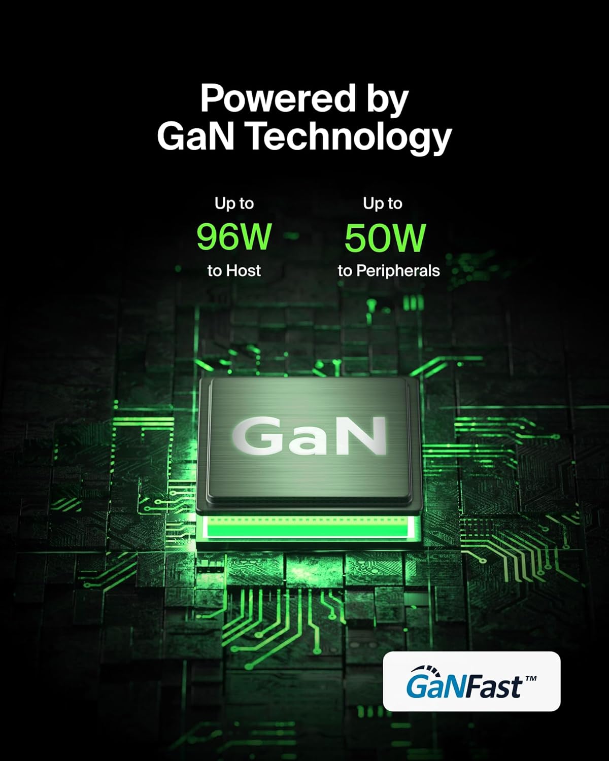 - GaN TECHNOLOGY INTEGRATED: Get safe, efficient charging with GaN technology. This device delivers 146W Power Delivery for up to 96W to your host device and 50W to peripherals, ensuring optimal power distribution & high-speed performance for your devices.