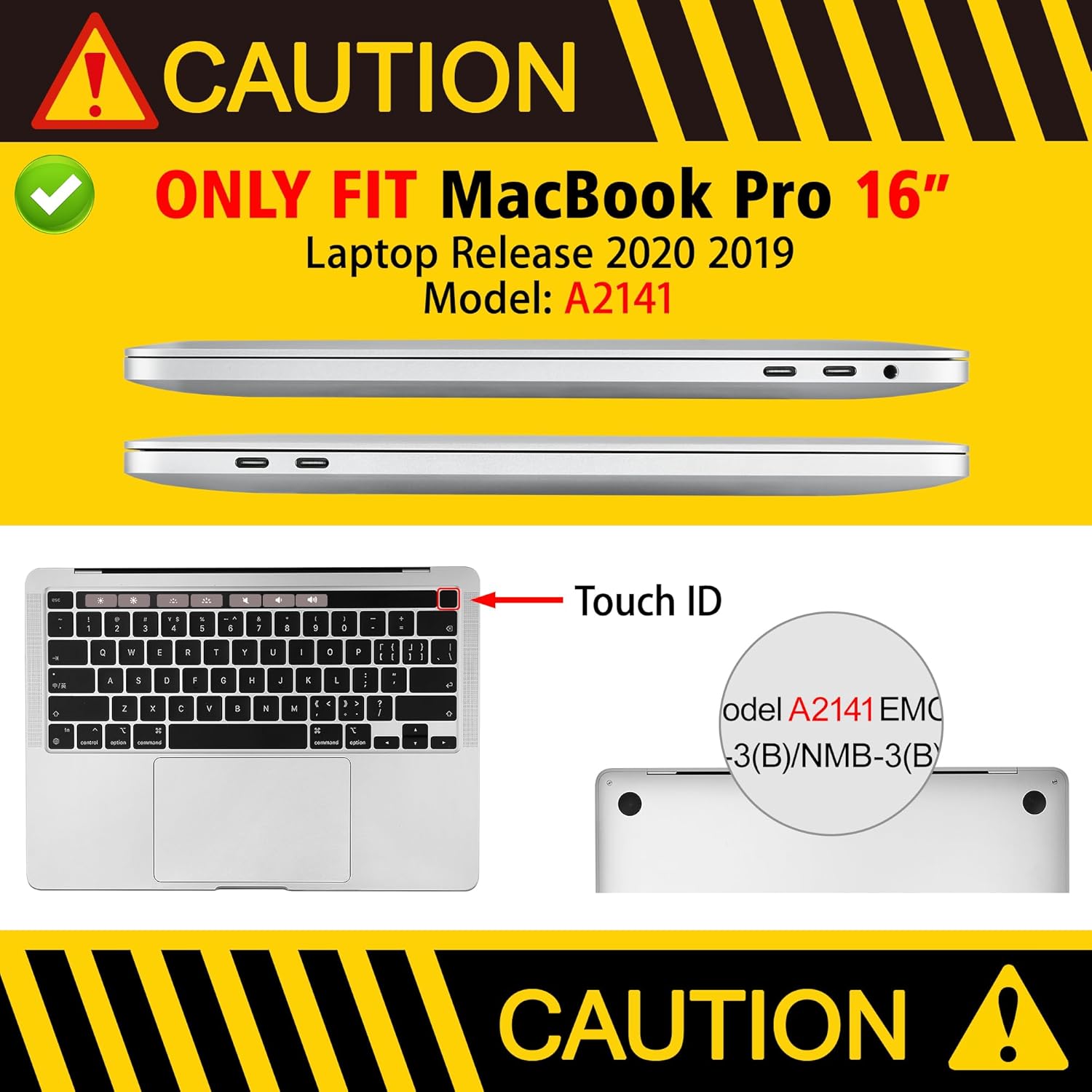 - Compatibility With: Designed Only to be compatible with Macbook Pro 16 inch 2019 2020 with Touch Bar ( Model: A2141 ). Compatibility Warning: This case is NOT compatible with other laptop models. Please kindly check your laptop modle number like "A2141" on the back of the laptop before your purchase
