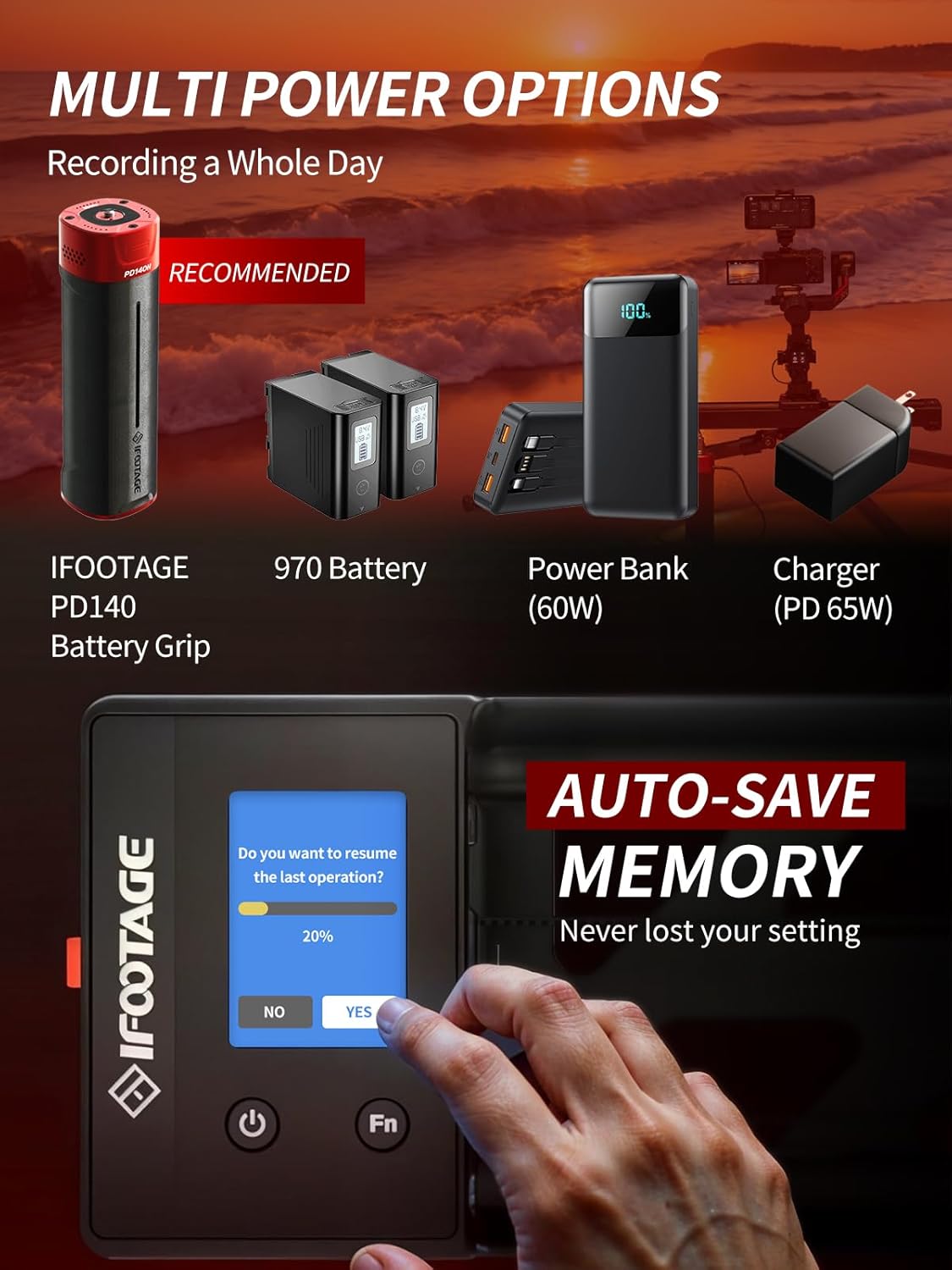 - 💡【All-Day Power: Single-Cable PD 60W Charging】: Shoot non-stop with USB-C PD 60W support. Power the slider, attached DJI gimbal, and camera simultaneously via one cable (60W+ power supply required for DJI integration). Compatible with F970 batteries or wall outlets—never miss a moment