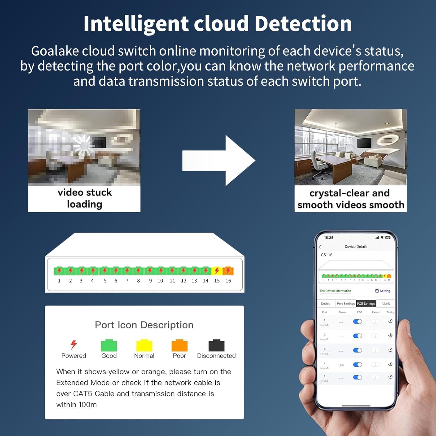 - Effortless Management via APP or Web Interface: Easy Smart Management allows you to manage and configure your network effortlessly via a app or a comprehensive web interface and free software. The Goalake 16-Port Managed Gigabit Switch is an exceptional choice for any business seeking robust network management capabilities.