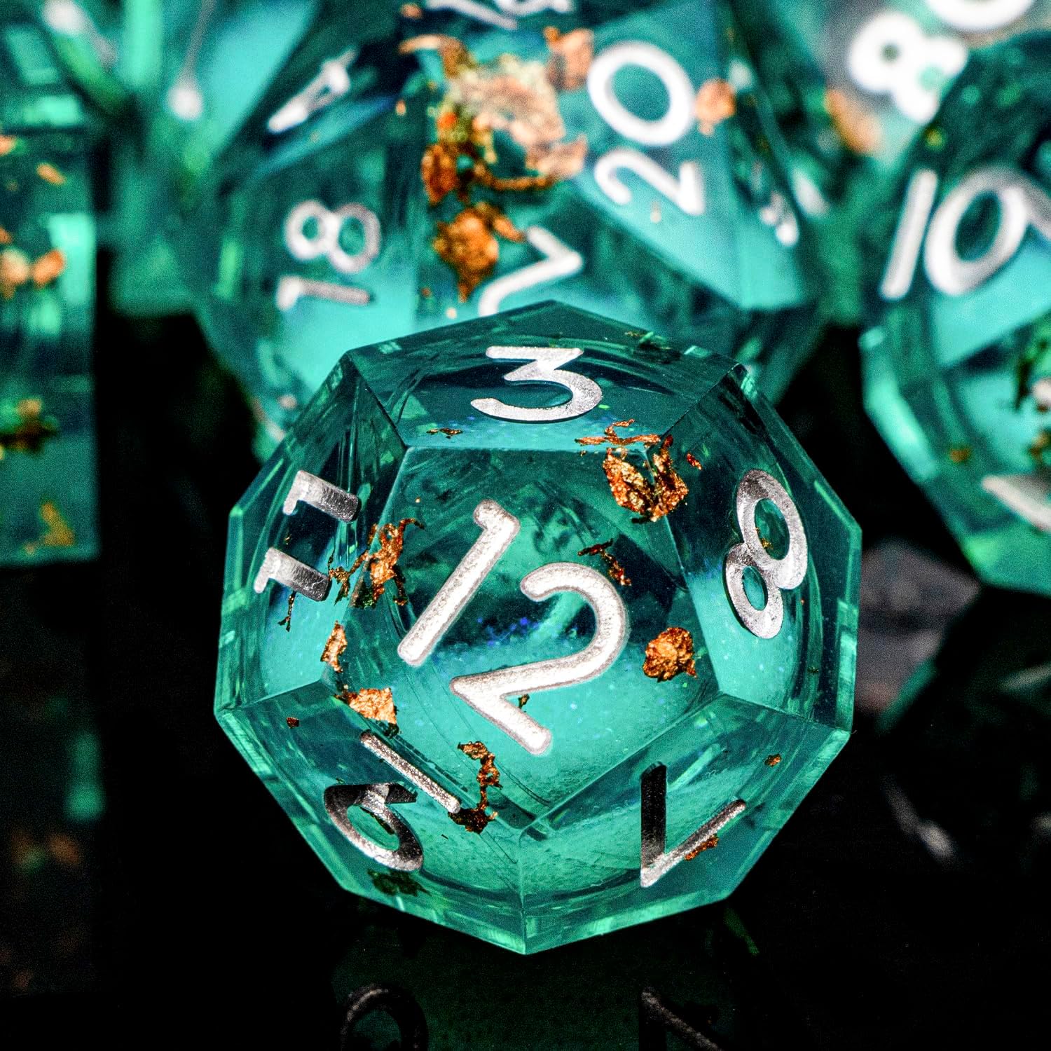 - Liquid Core Dice: At the heart of resin dice lies a transparent sphere, filled with shimmering liquid sand that moves gracefully with every roll. This unique design adds a mesmerizing visual element to your game experience.