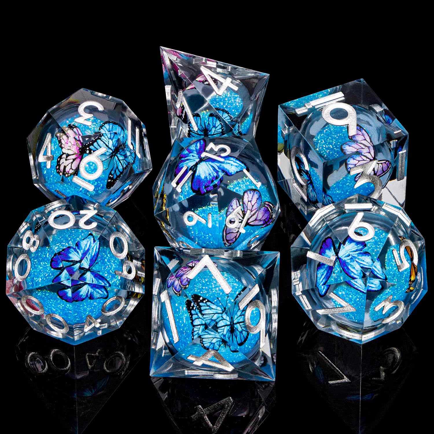 - Liquid Core Dice: At the heart of resin dice lies a transparent sphere, filled with shimmering liquid sand that moves gracefully with every roll. This unique design adds a mesmerizing visual element to your game experience.